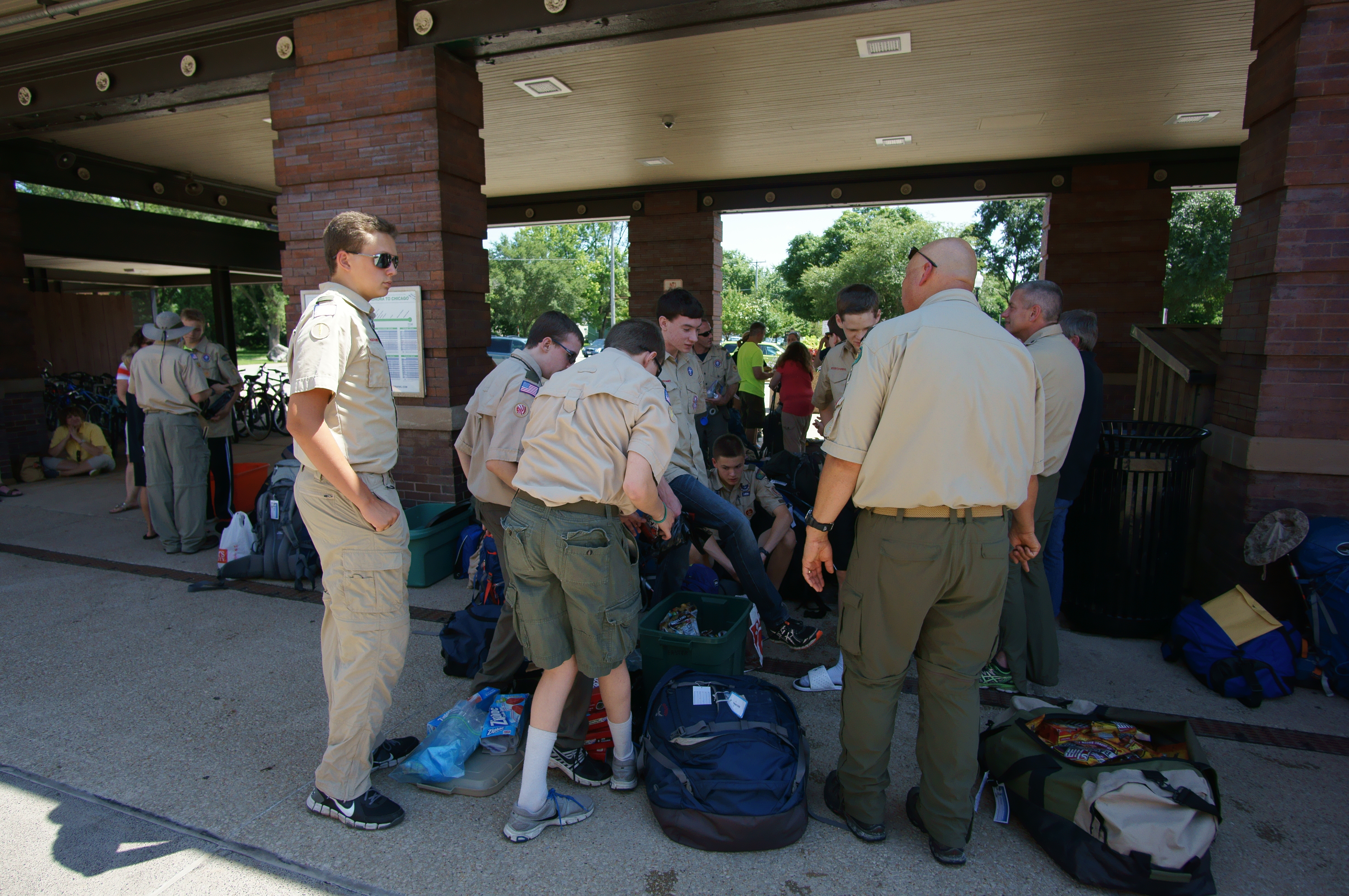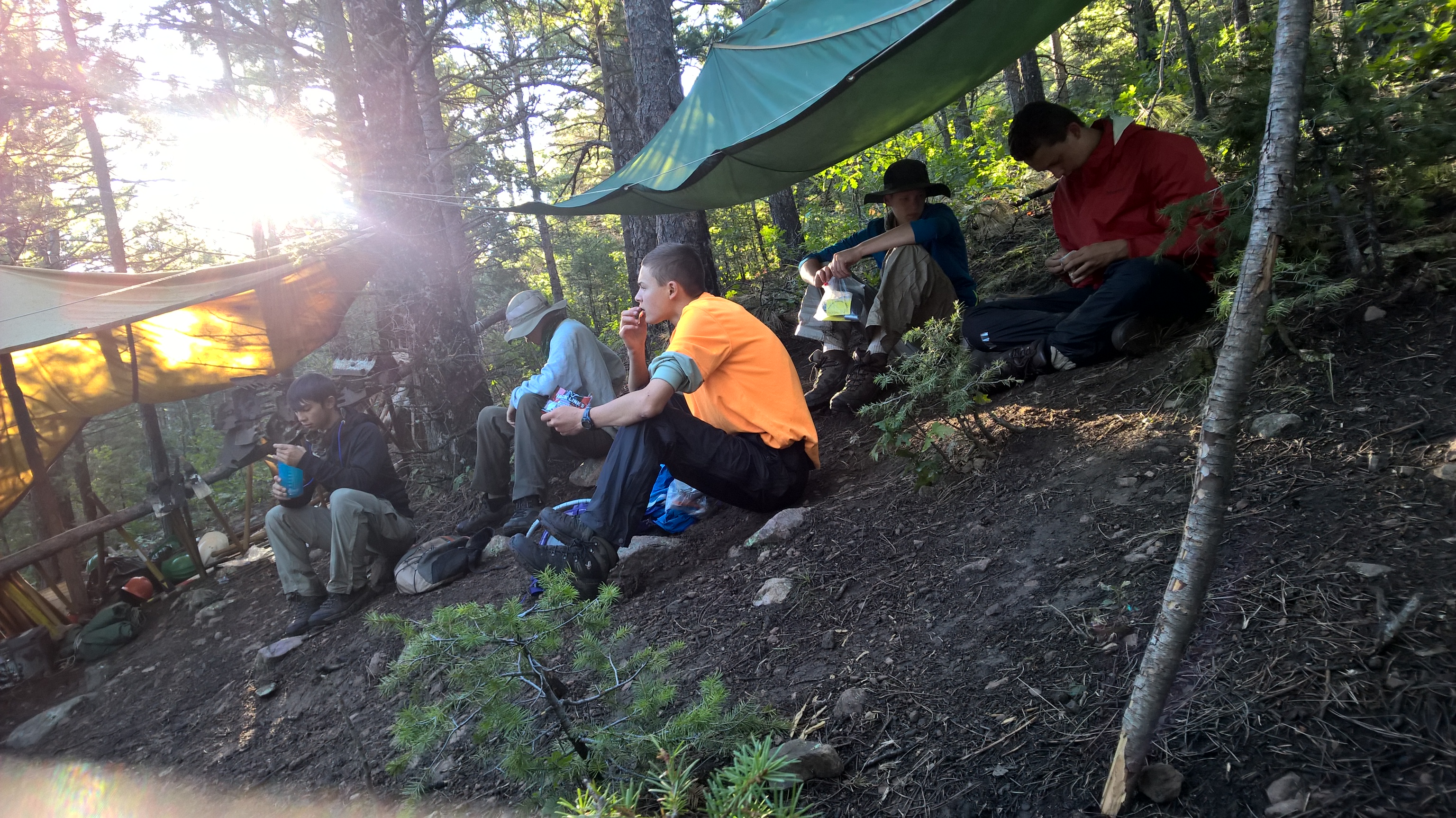 We picked up our packs and bear bags, along with more water. We then headed down to Miner’s Park and arrived at 5 PM. The adults took some quick showers and the scouts signed up for rock climbing in the morning.