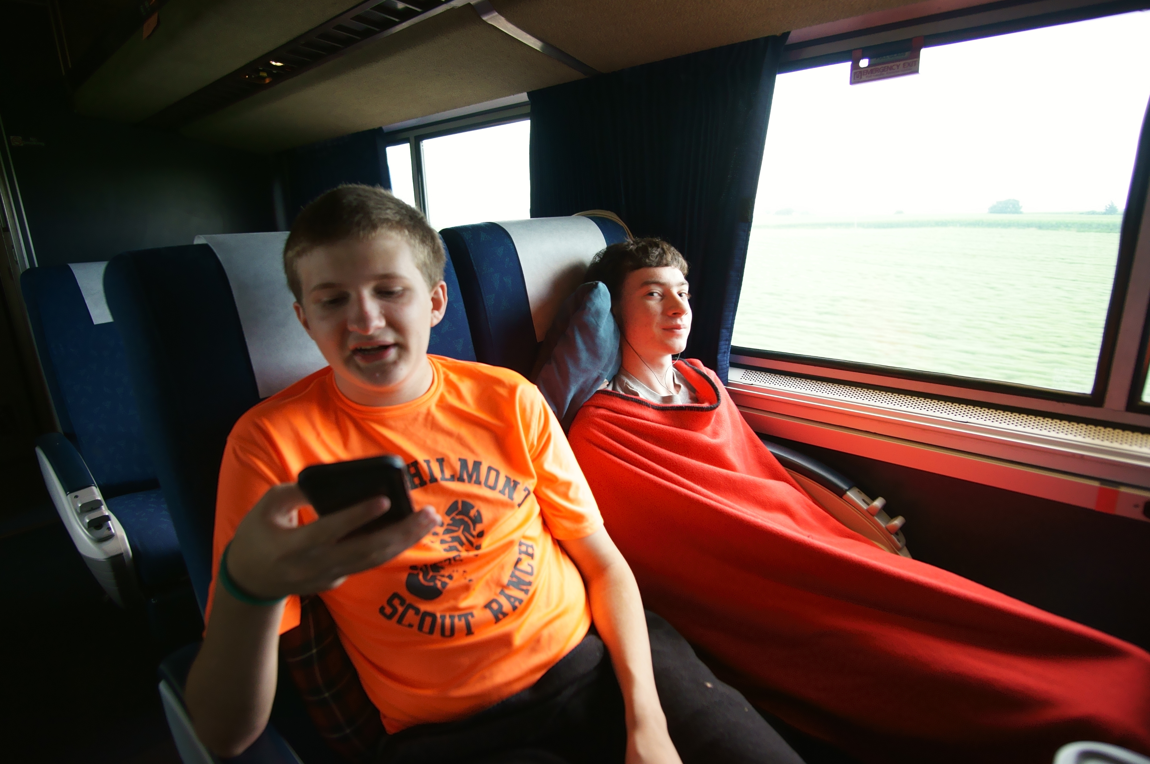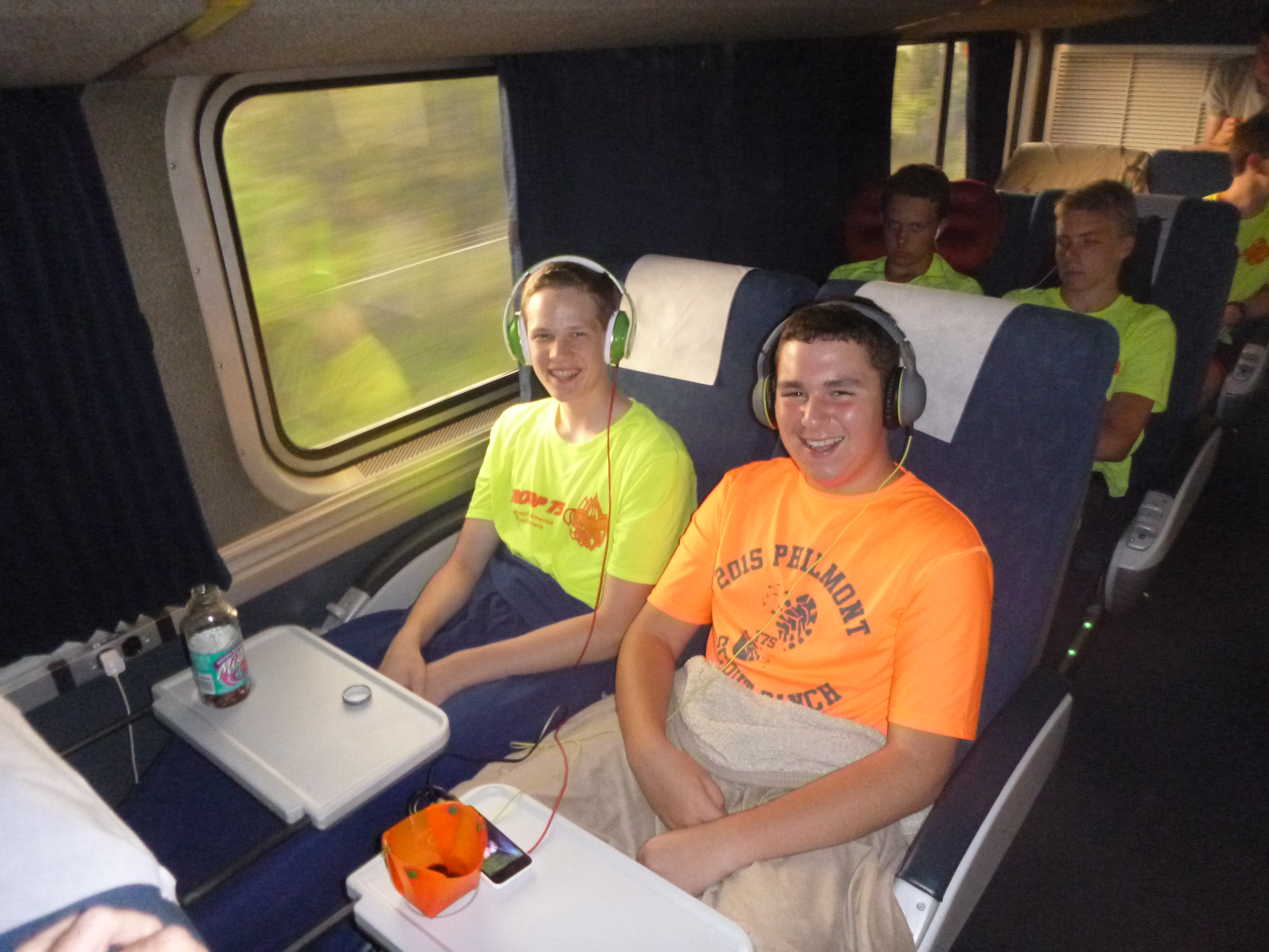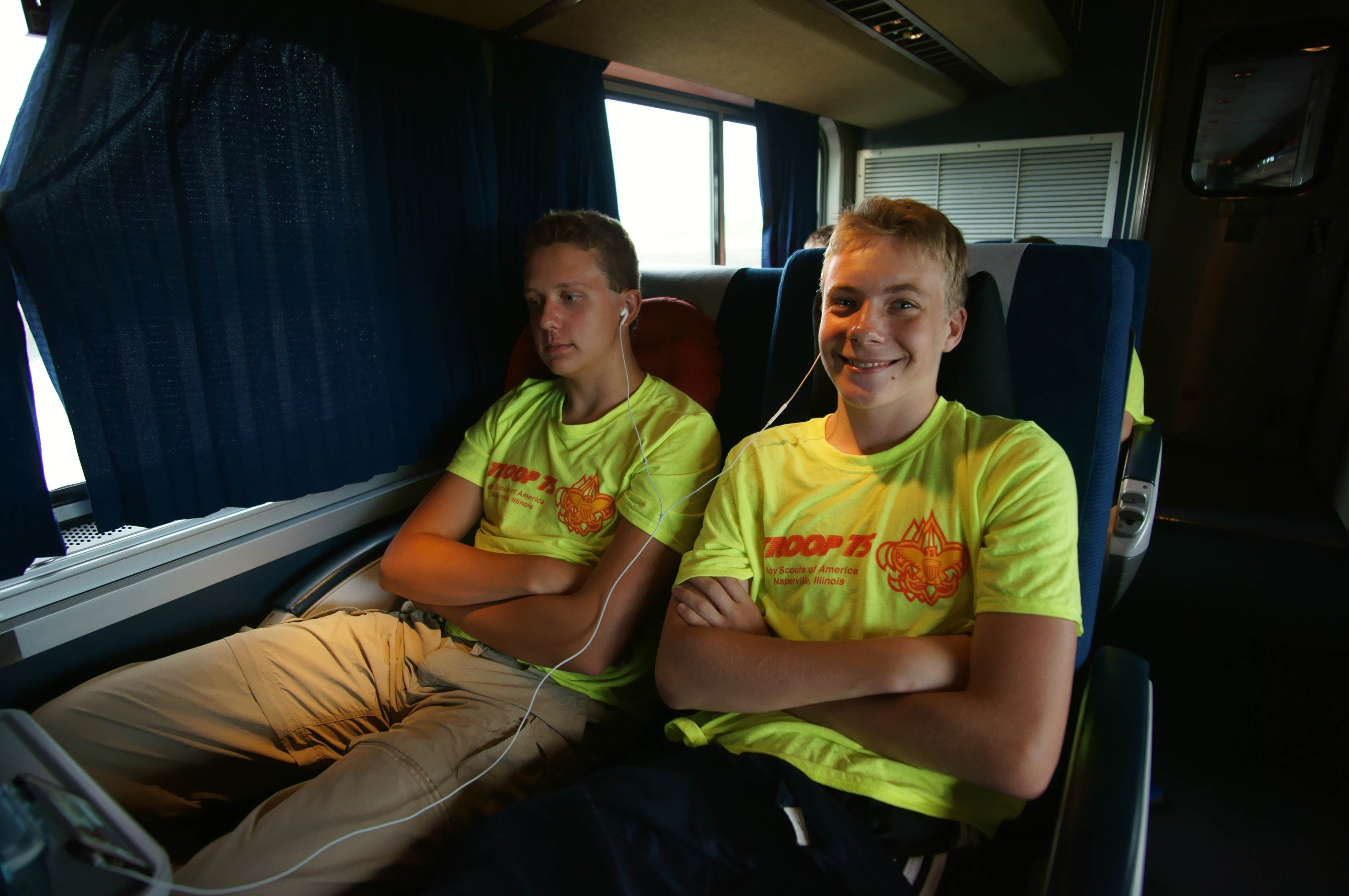 The train left the station on time and made its way to Raton, NM. Pizza was provided (delivered to the train station) at Galesburg for dinner. The scouts explored the train, played cards, read books and napped/slept when possible.