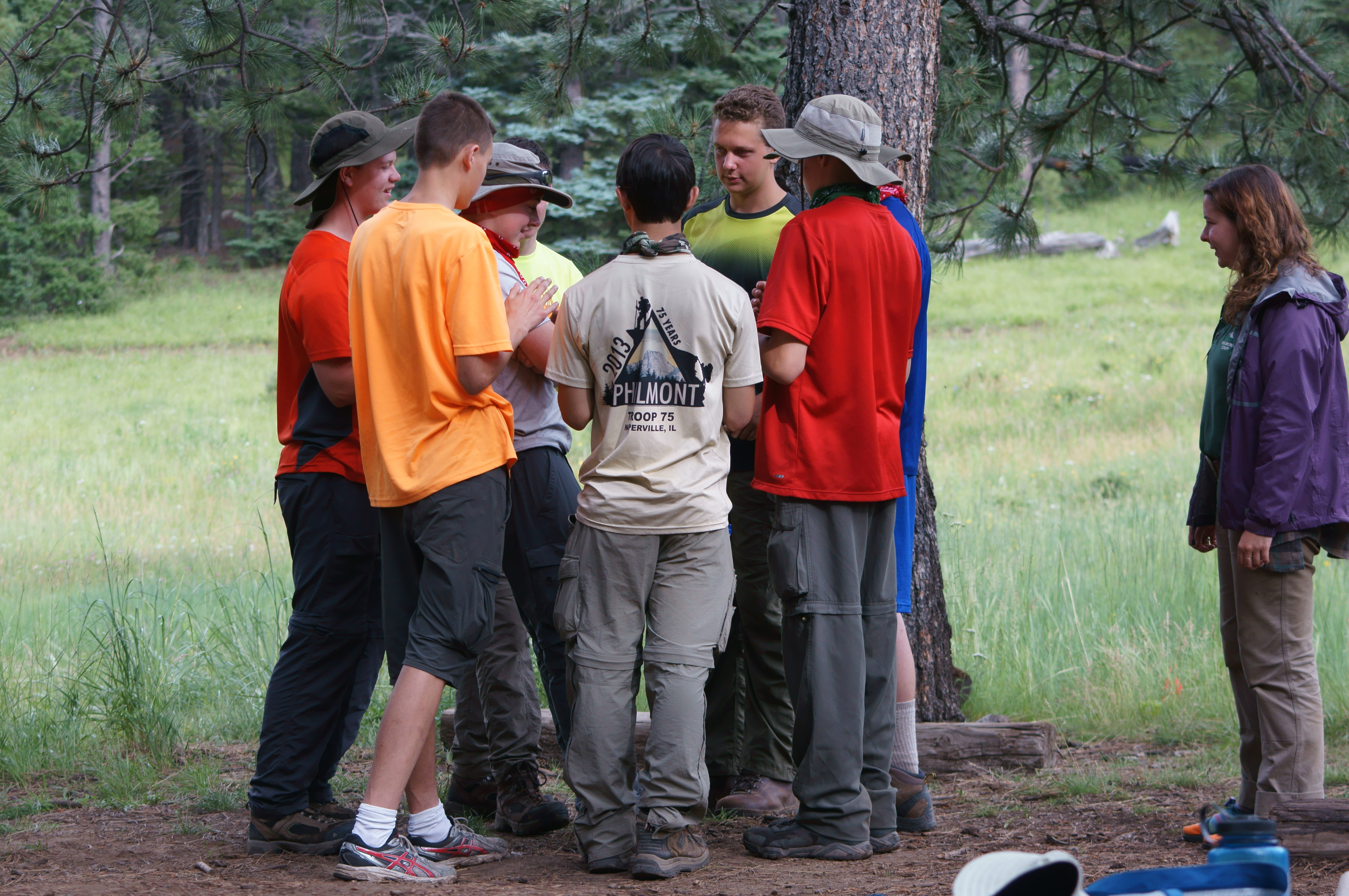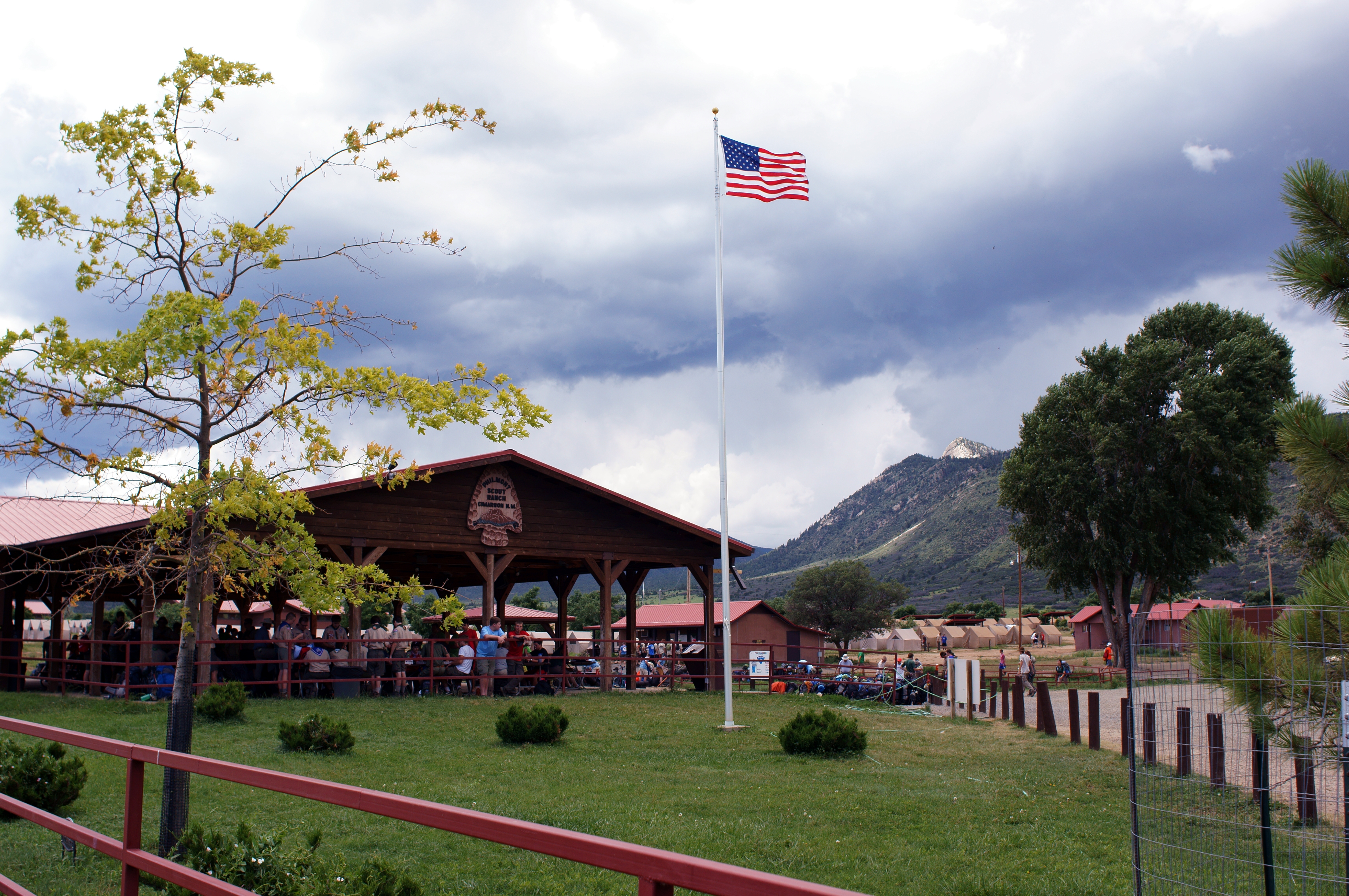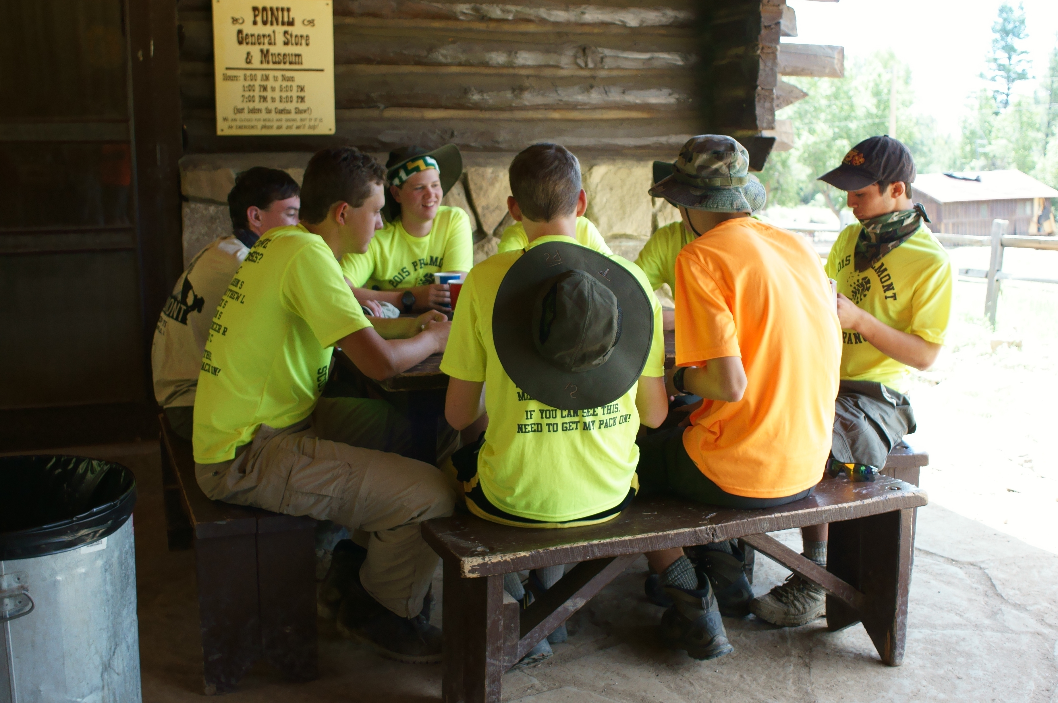 We woke up before sun rise this morning. Ate a quick breakfast and packed our gear for the last time. We hiked down to the stockade where we refilled all of our water bottles and then hiked on to the cope course. We had to wait for the staff to arrive since we got there a little early. The boys did the low cope course and seemed to really enjoy it. When we were done with cope we waited for the bus to take us back to Base Camp. We only had to walk 1.7 miles today and it was all downhill. When we got to Base Camp we dropped our stuff at the platform tents and went to the commissary for cold drinks and ice cream. Dinner tonight in Cimarron at the St. James Hotel which dates back to the old west and gold mining days. Tomorrow we catch the train back home.