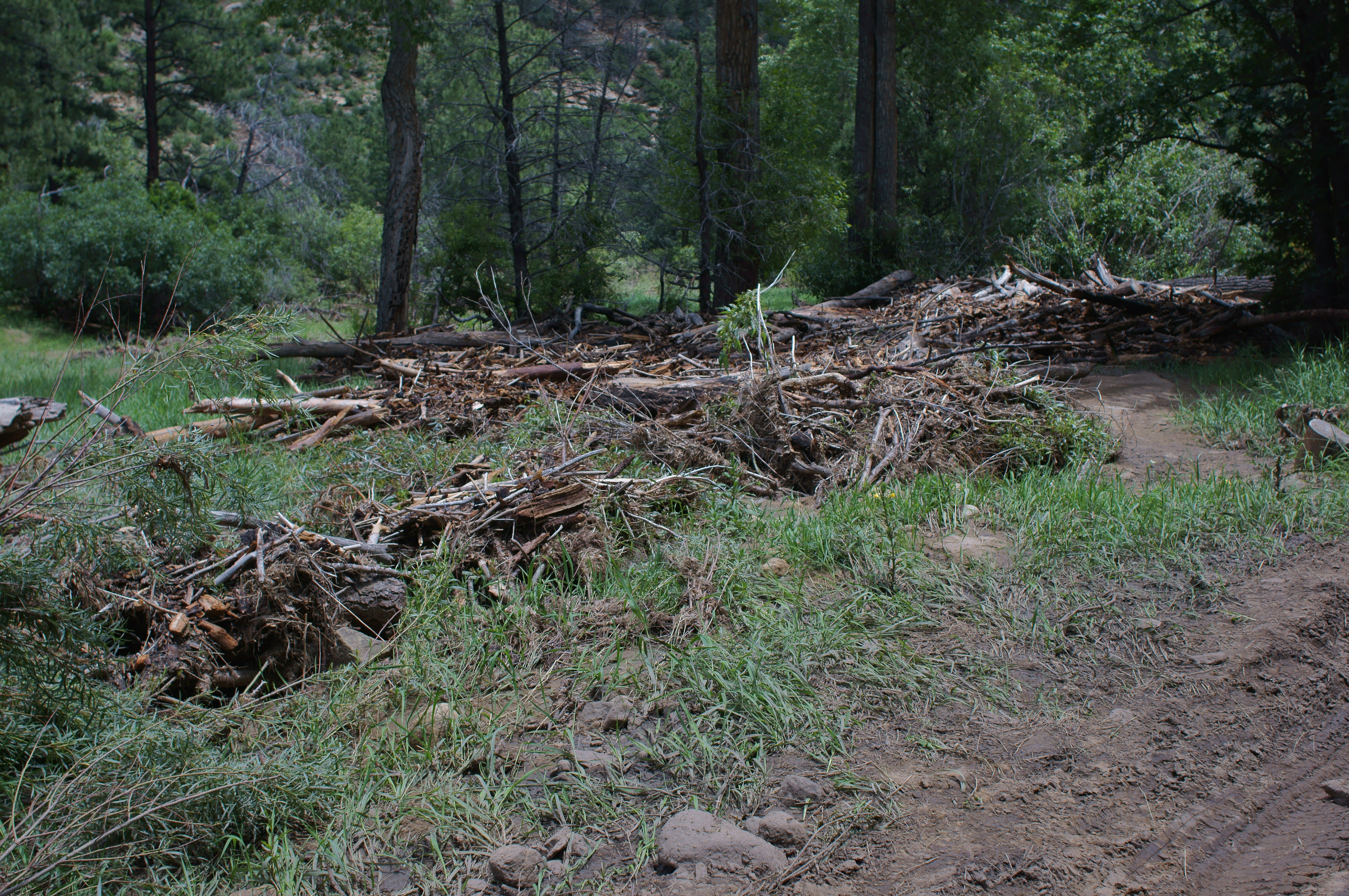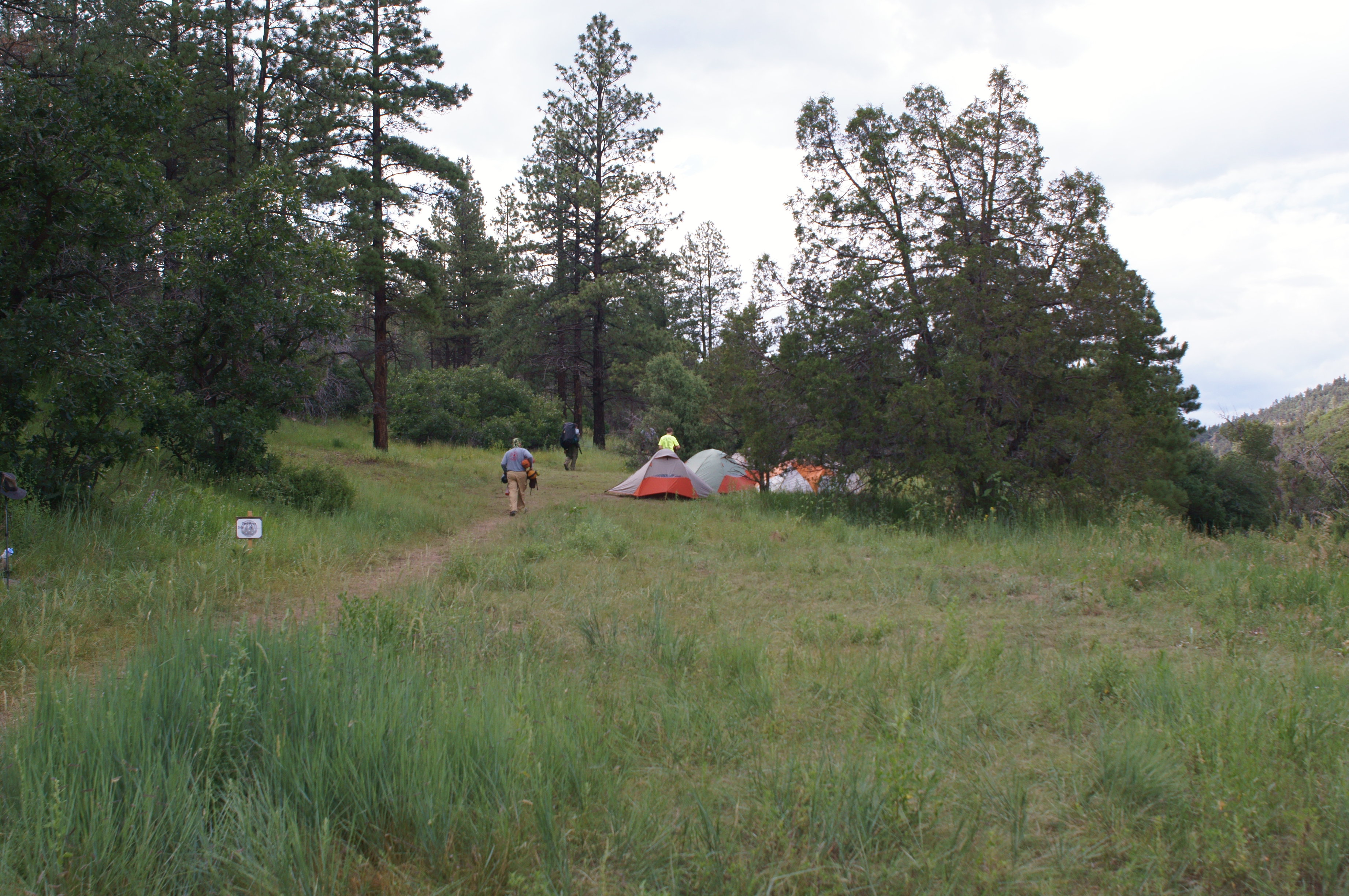 We left Ponil and headed out to our first campsite at Bent. The path had fences (with gates) and some mud to navigate around. After another 2 miles or so of hiking we ended up at Bent. The campsites were a mess after the flash flooding of the past few weeks. The first site was a complete washout. Site two was filled with debris from washout. Sites 3 and 5 were across the river… In the end we chose site 4 due to its location and elevation away from the river. As it turned out, our sister crew would reach the same conclusion and we allowed them to camp with us as it seemed like the right thing to do.