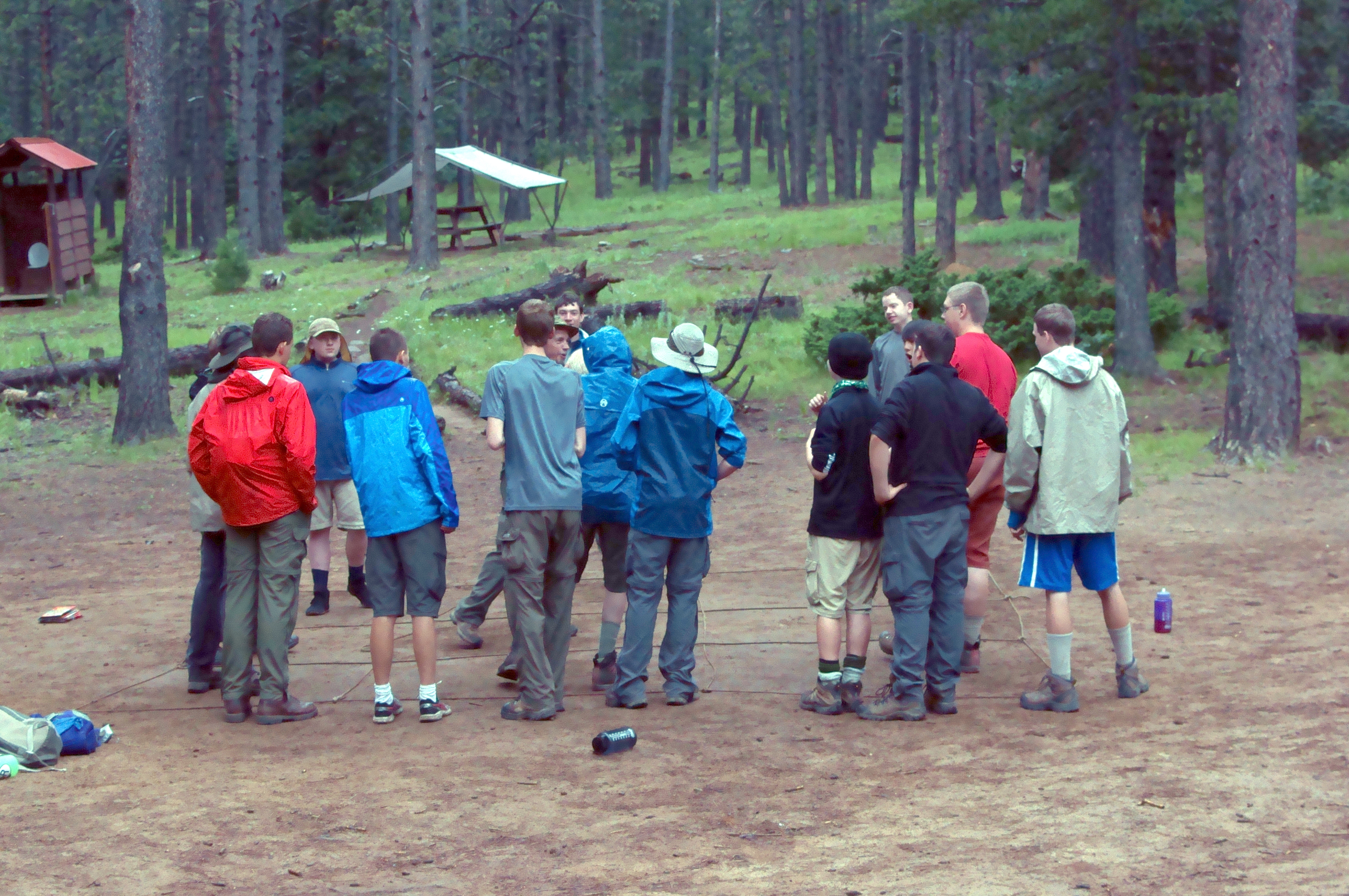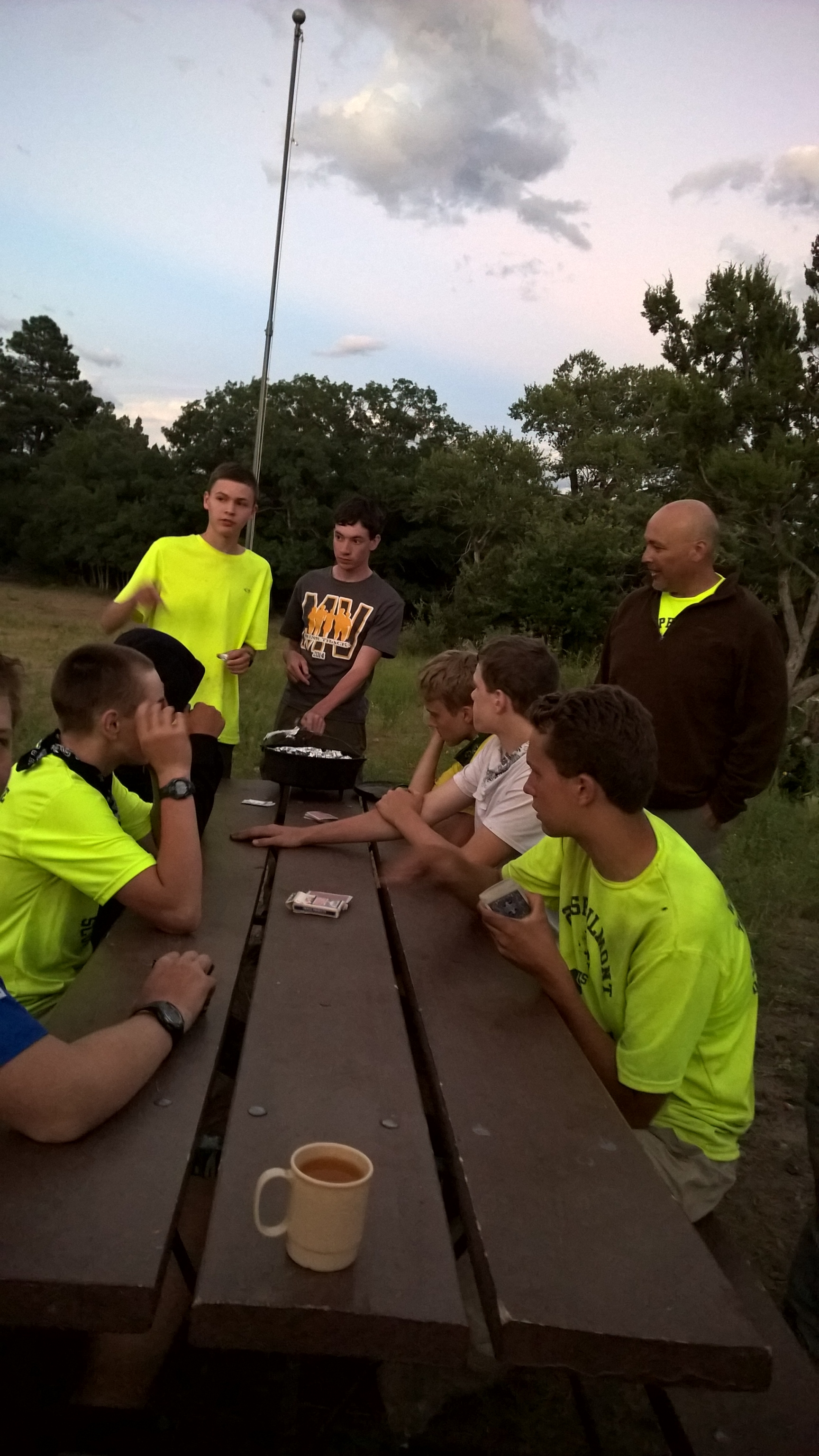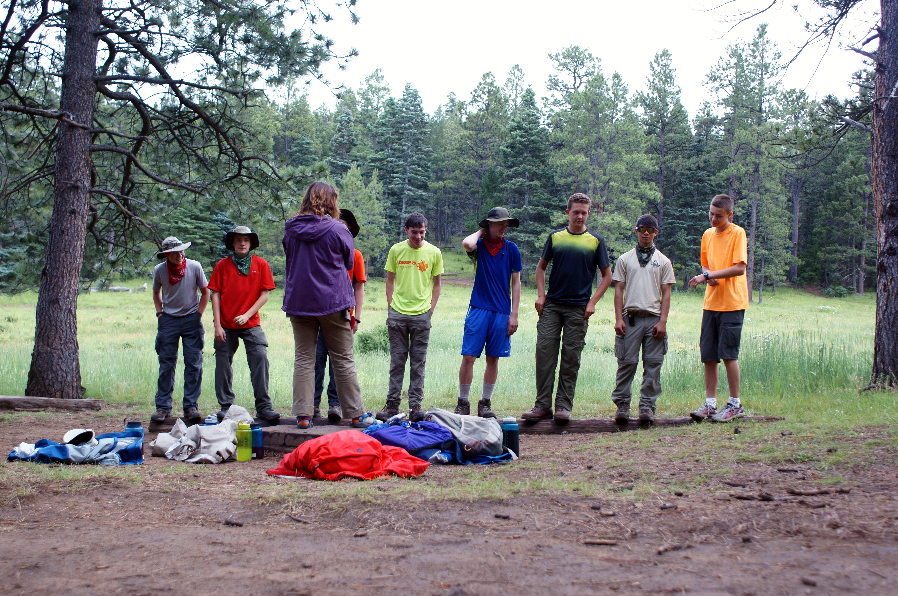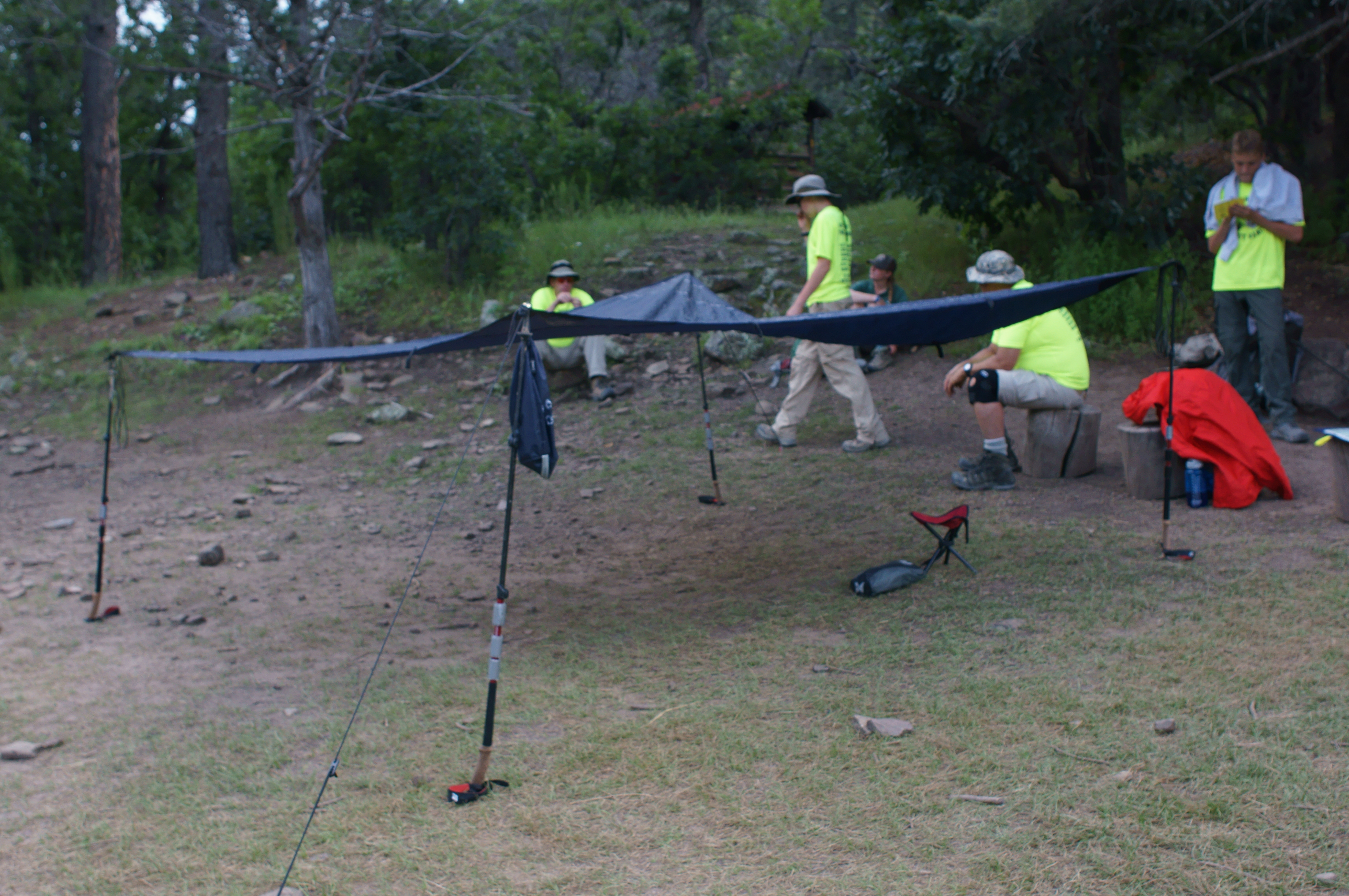 Katy then did some more training, covering things like the tarp, bear bag hanging and proper Philmont cooking/cleanup with the provided pots. We also set up our tents in the recommended way – 50 feet from the bearmuda triangle, no lines, no ‘shapes’, avoided widowmakers and more.