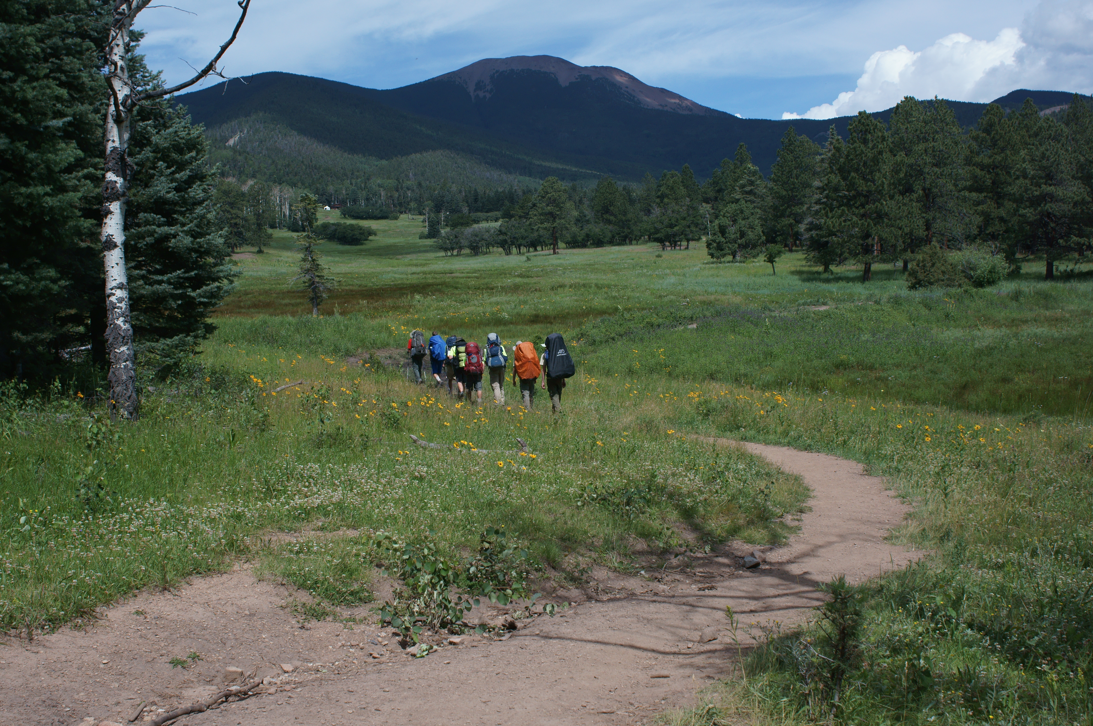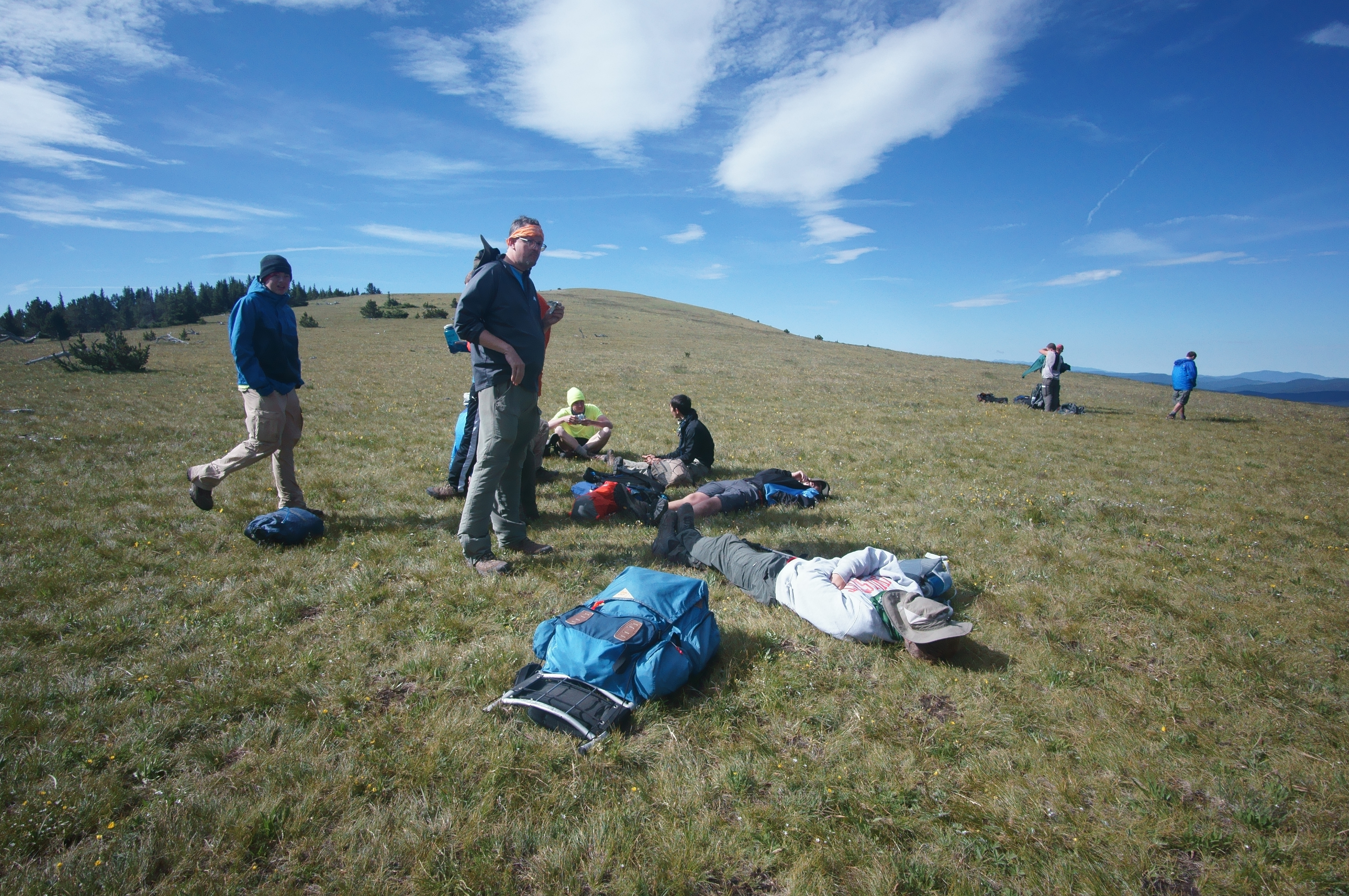 Once we completed the program activities, we headed up to Black Horse (~9800′) which was a 800 foot climb over about a mile or so. We arrived in camp and set up bear bags and tents for the first time without our ranger. We also prepared water for the next days climb (Baldy) and water for dinner. Bed time came early as our wake-up call was 5 AM for a 6 AM departure.