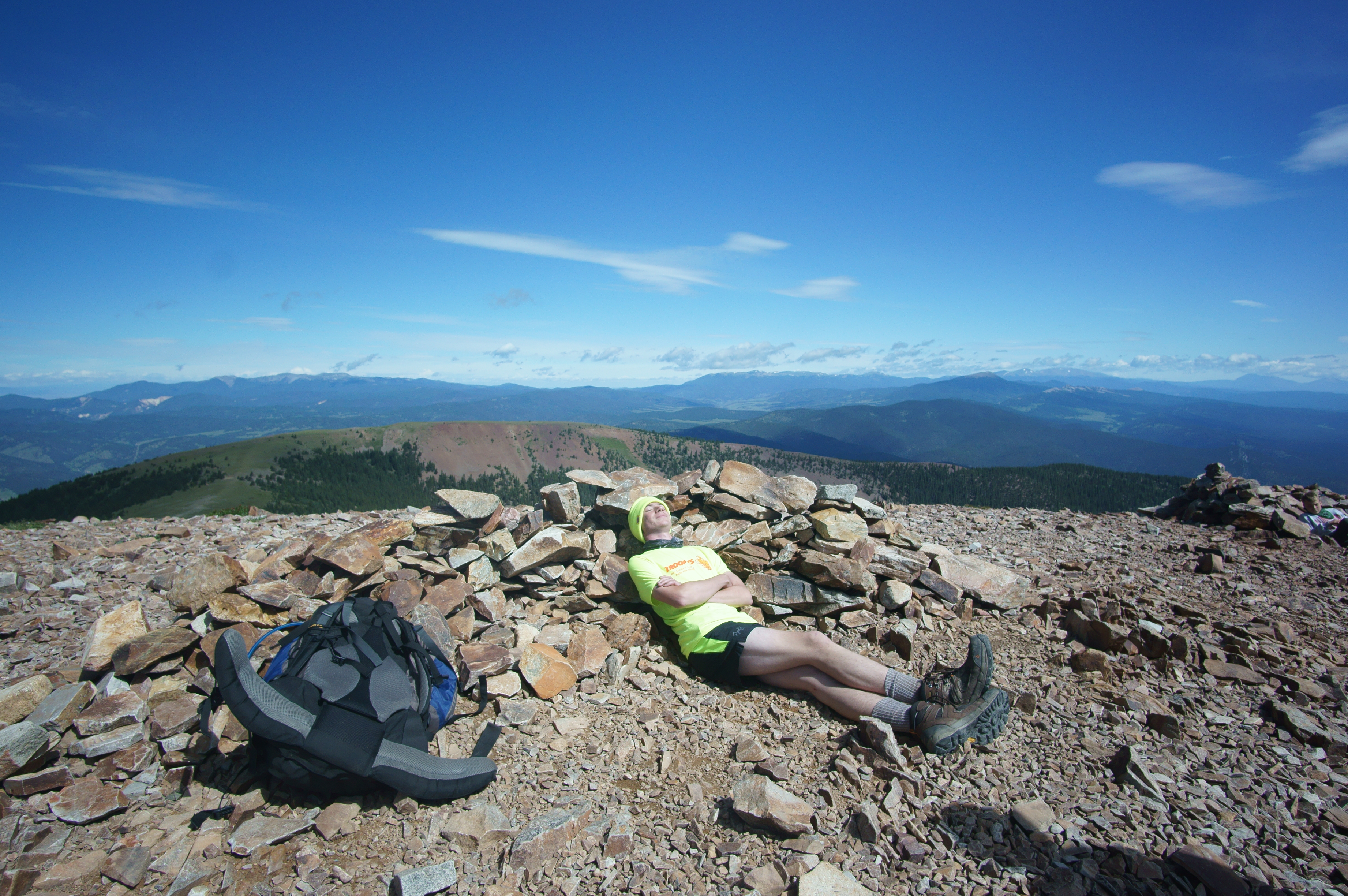 Once at the pass, we set down packs, pulled out our day packs, restocked our water, set up bear bags and head out on our side trip for the day – Tooth of time and Schaefer’s Peak (9400′). We then headed out to the peak, which was another 700′ climb. We rested at the peak and enjoyed the views: