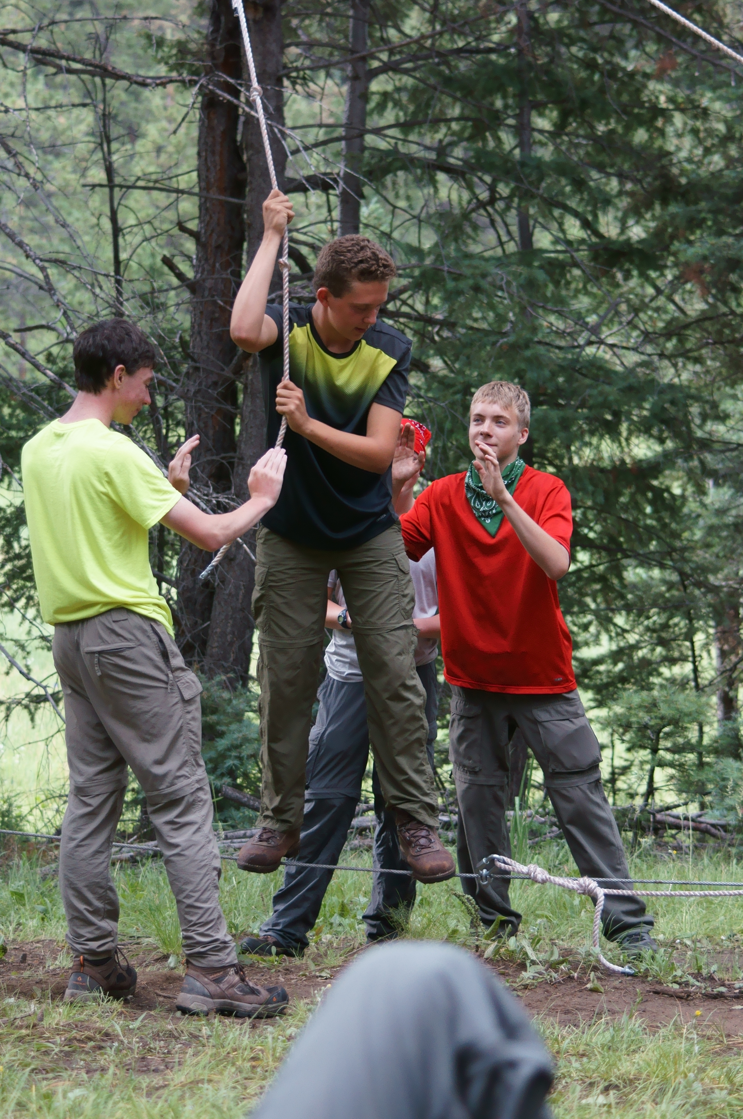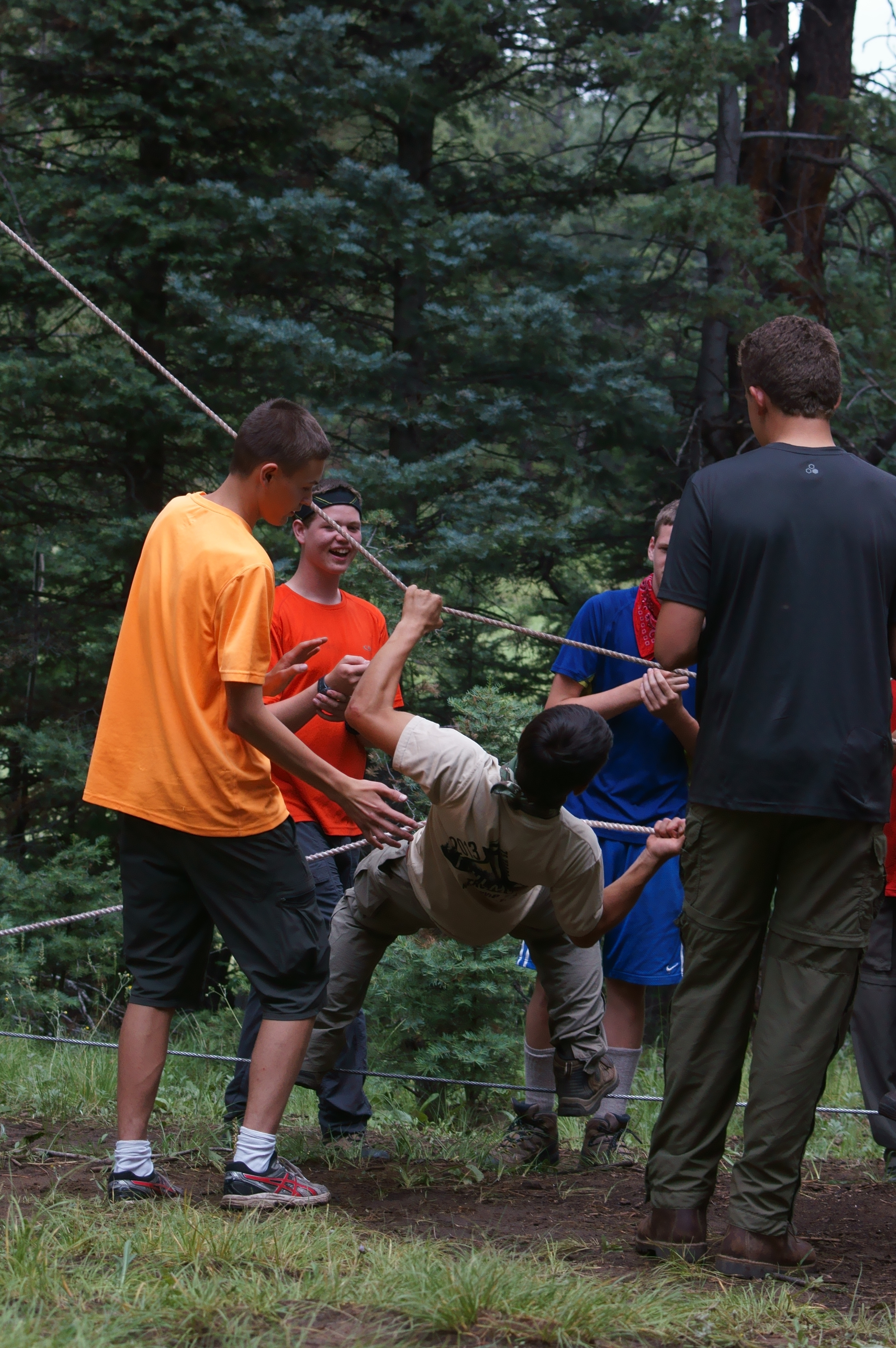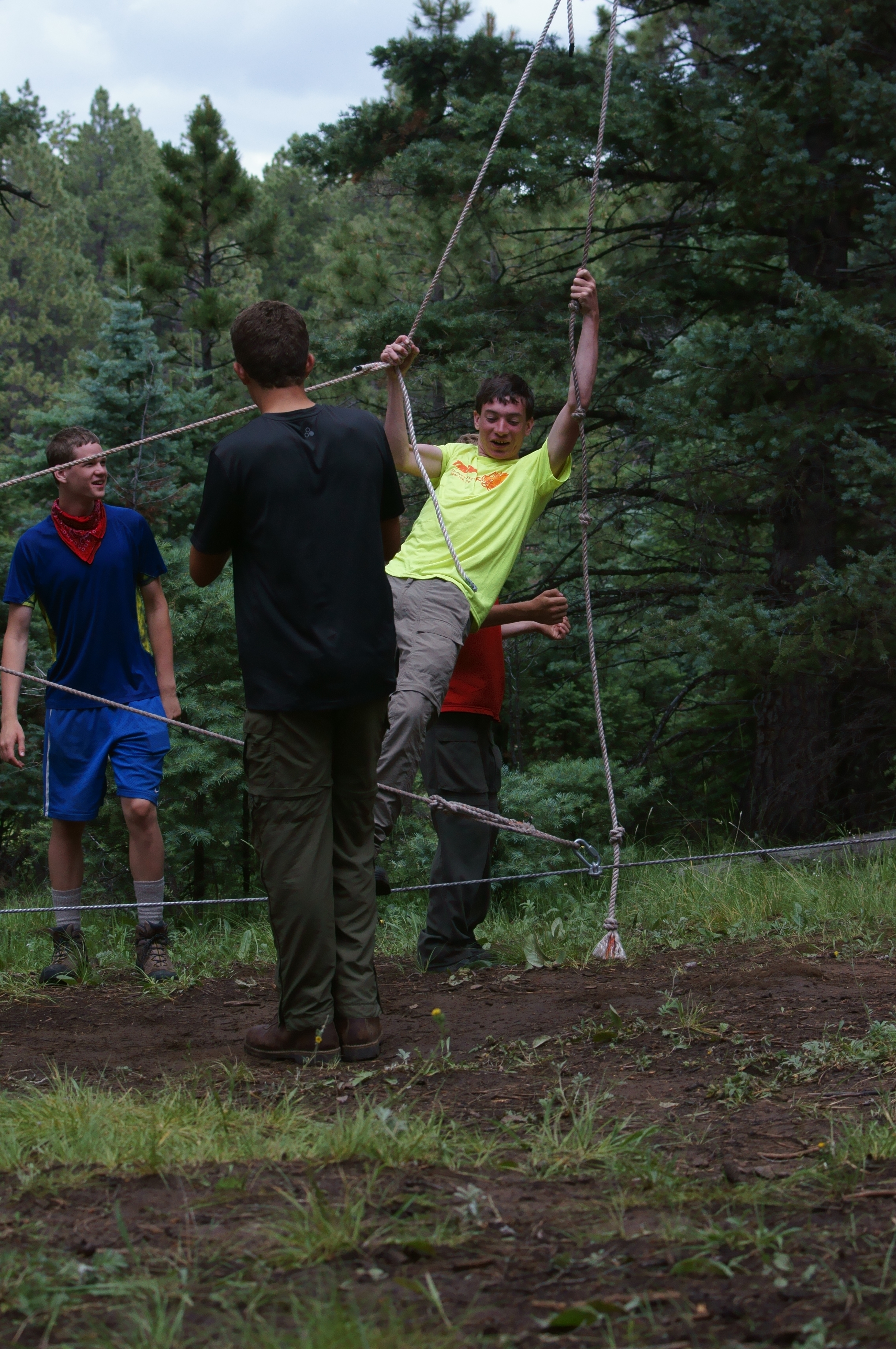 It began to rain as we gathered under a tarp which was situated over a nice picnic table. After the rain and our lunch eaten, we proceeded to set up camp on a hill above the camp. We were signed up for a 5 PM session for their COPE course. At 5 PM the boys had a blast with team building exercises and all around enjoyed themselves.