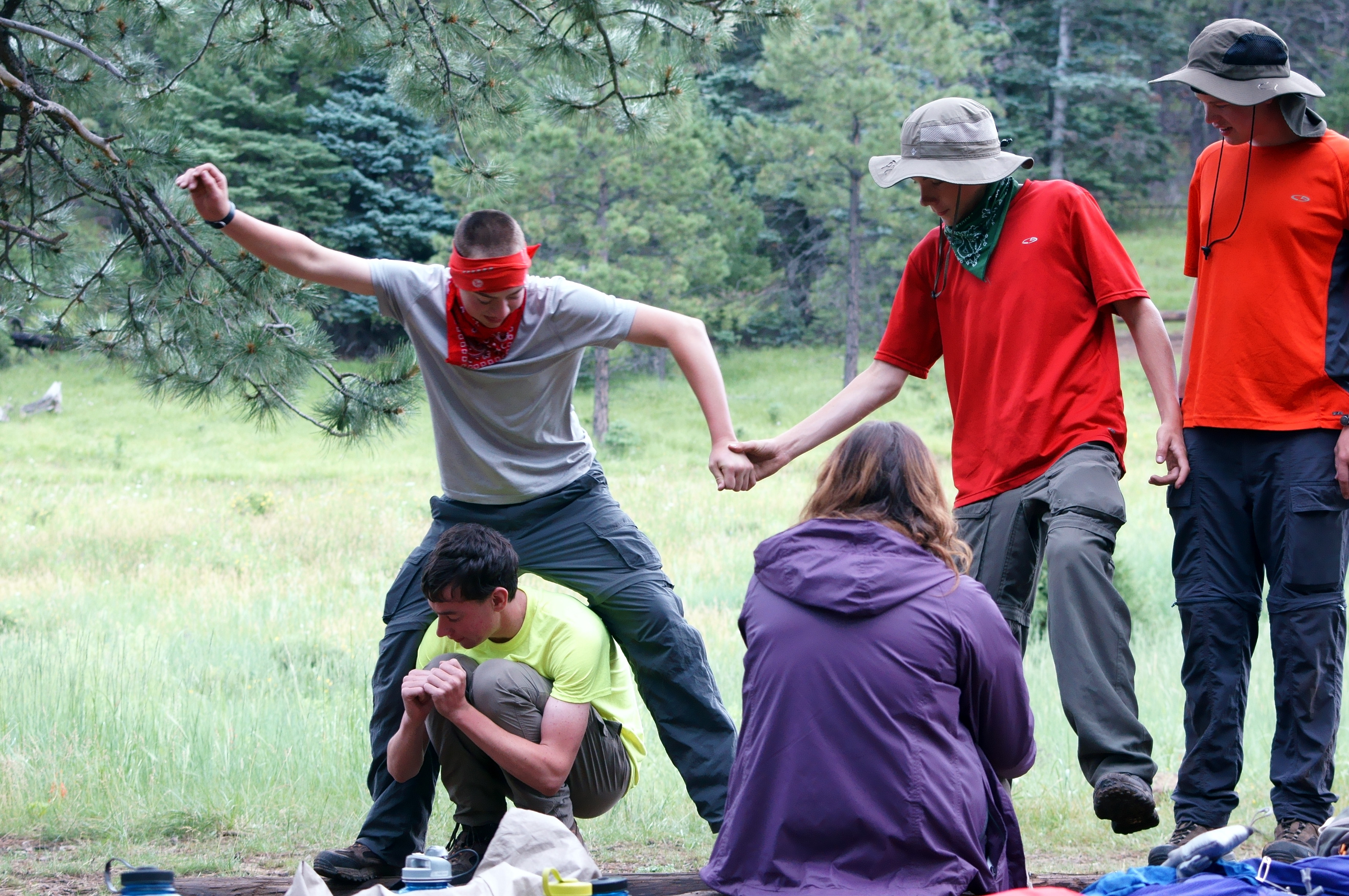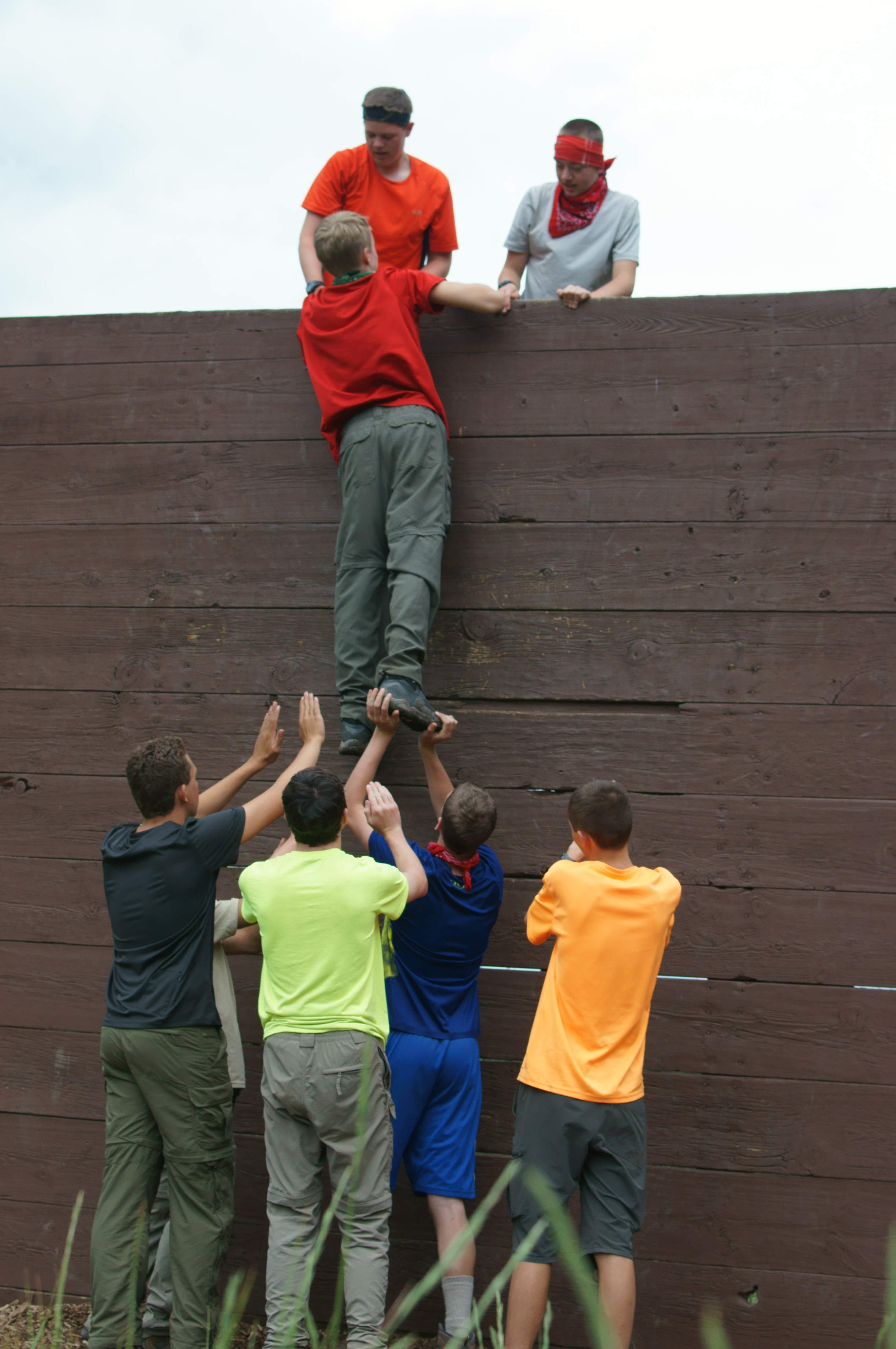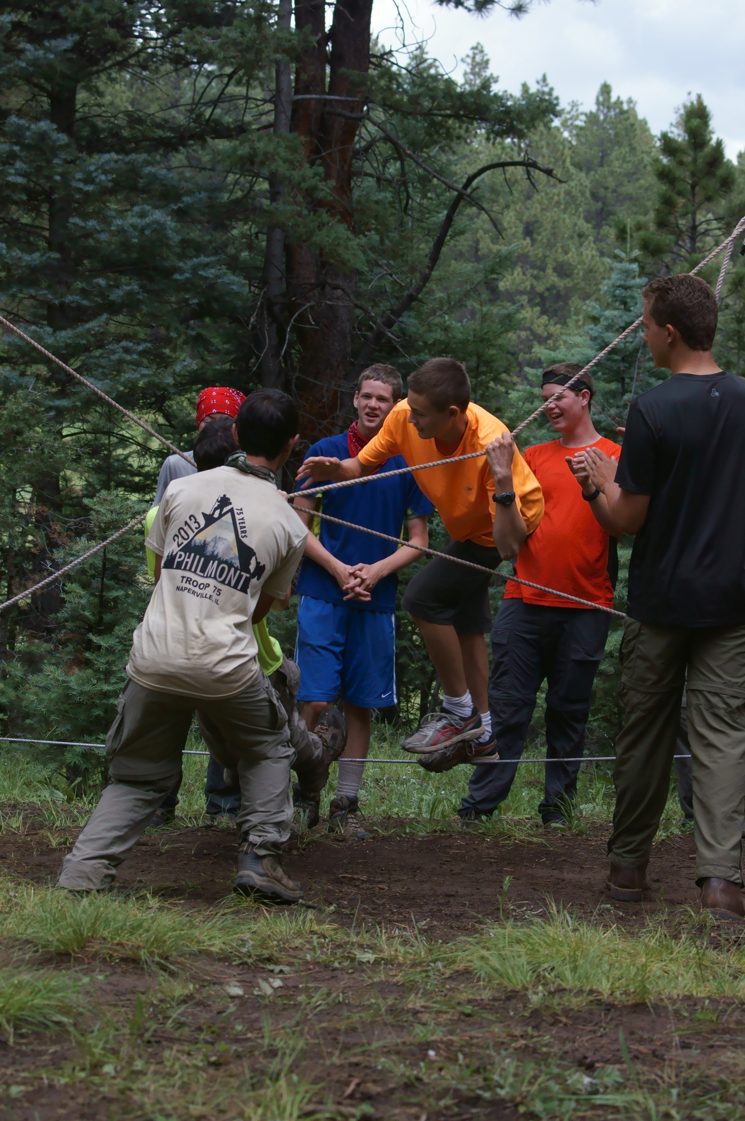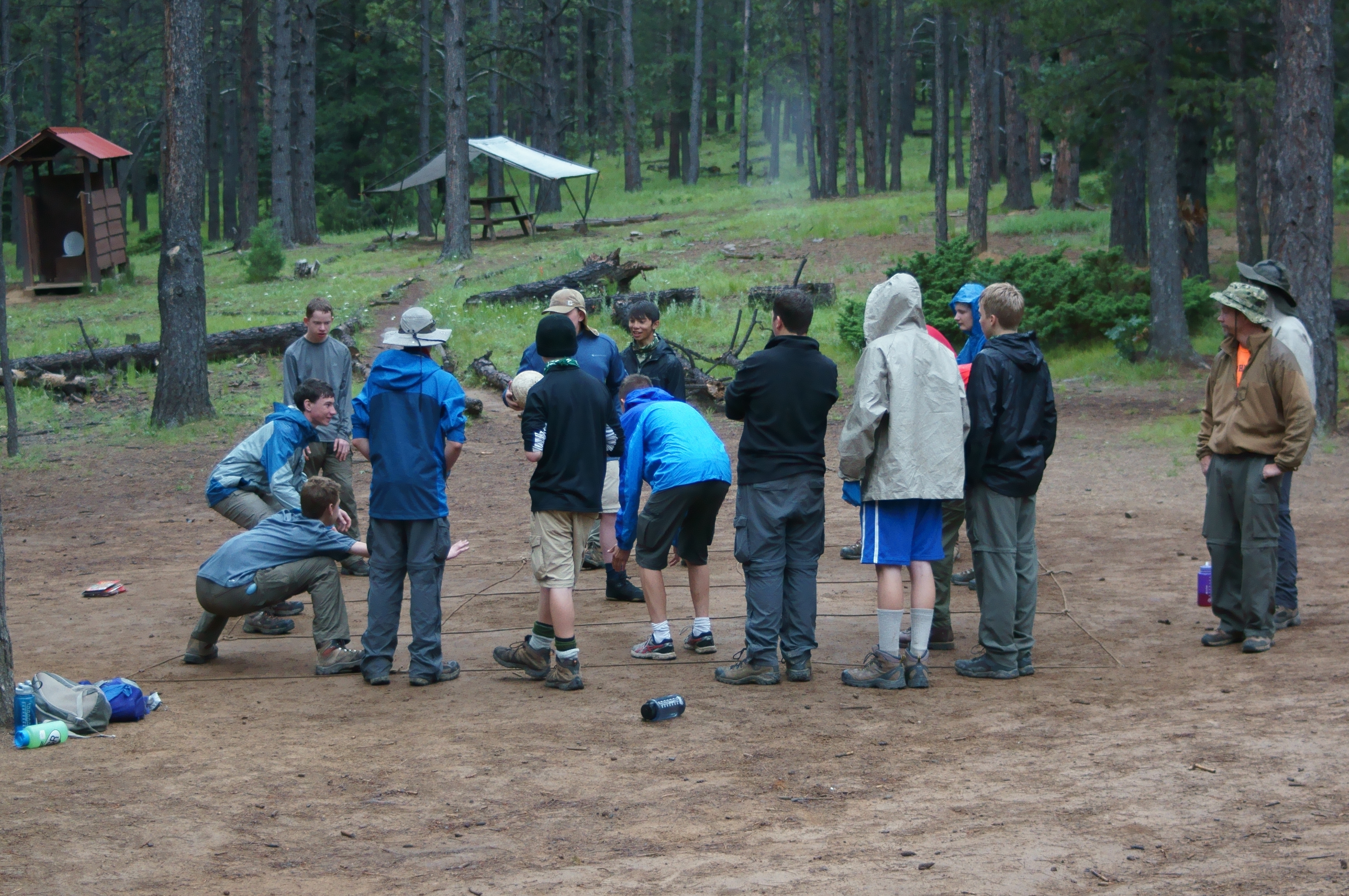 It began to rain as we gathered under a tarp which was situated over a nice picnic table. After the rain and our lunch eaten, we proceeded to set up camp on a hill above the camp. We were signed up for a 5 PM session for their COPE course. At 5 PM the boys had a blast with team building exercises and all around enjoyed themselves.
