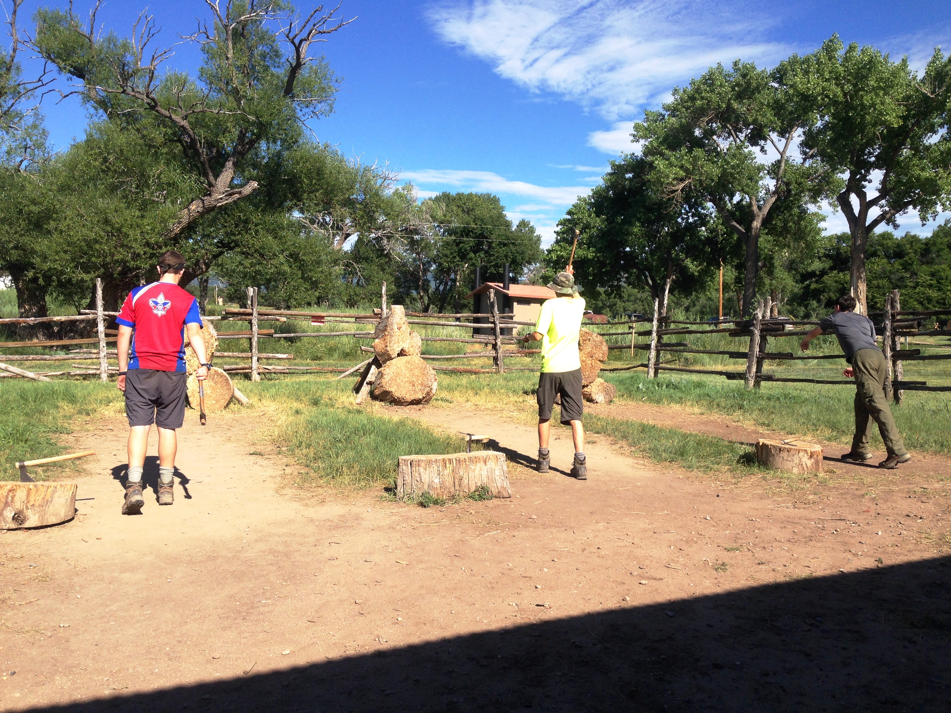 Last early wake-up call at 5 AM. Had breakfast and headed out by 6:30 AM. We made our way out of Zastrow to Rayado to complete our Philmont journey. We avoided the high river and made it to Rayado in 2 hours. We explored the museum and threw tomahawks: