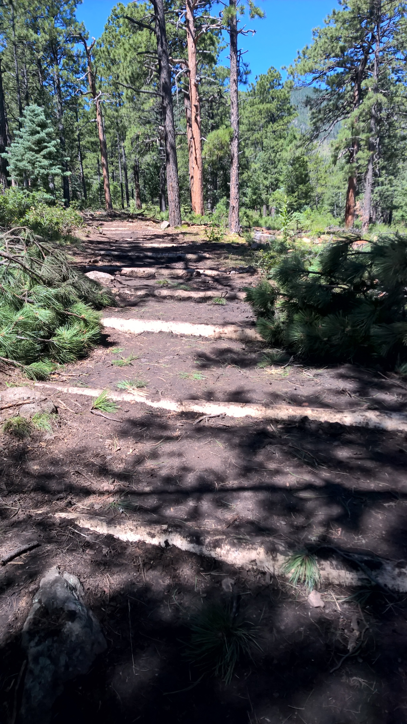 Woke up at 6 AM for our 7:30 AM conservation project. We ate breakfast. Then headed to the project with our day packs. The conservation project consisted of rebuilding a trail that was from the 1930’s that had become a bit of a mud/waterfall over time. We stripped the branches and bark off the trees to be used as erosion protection for the trail as well as steps: