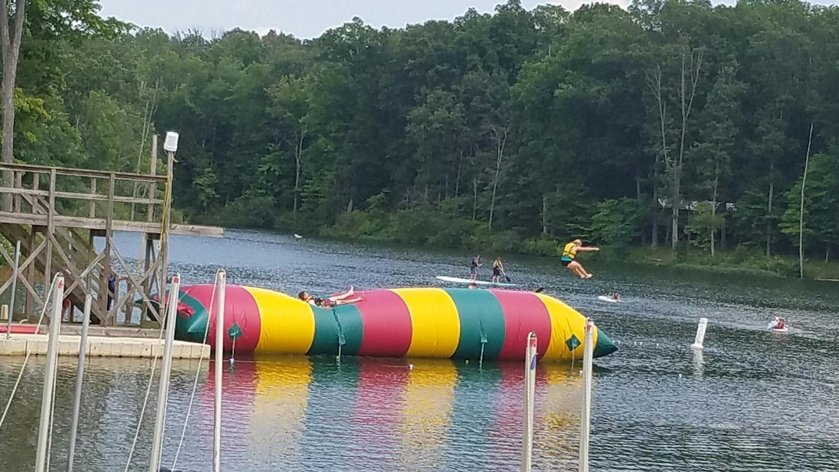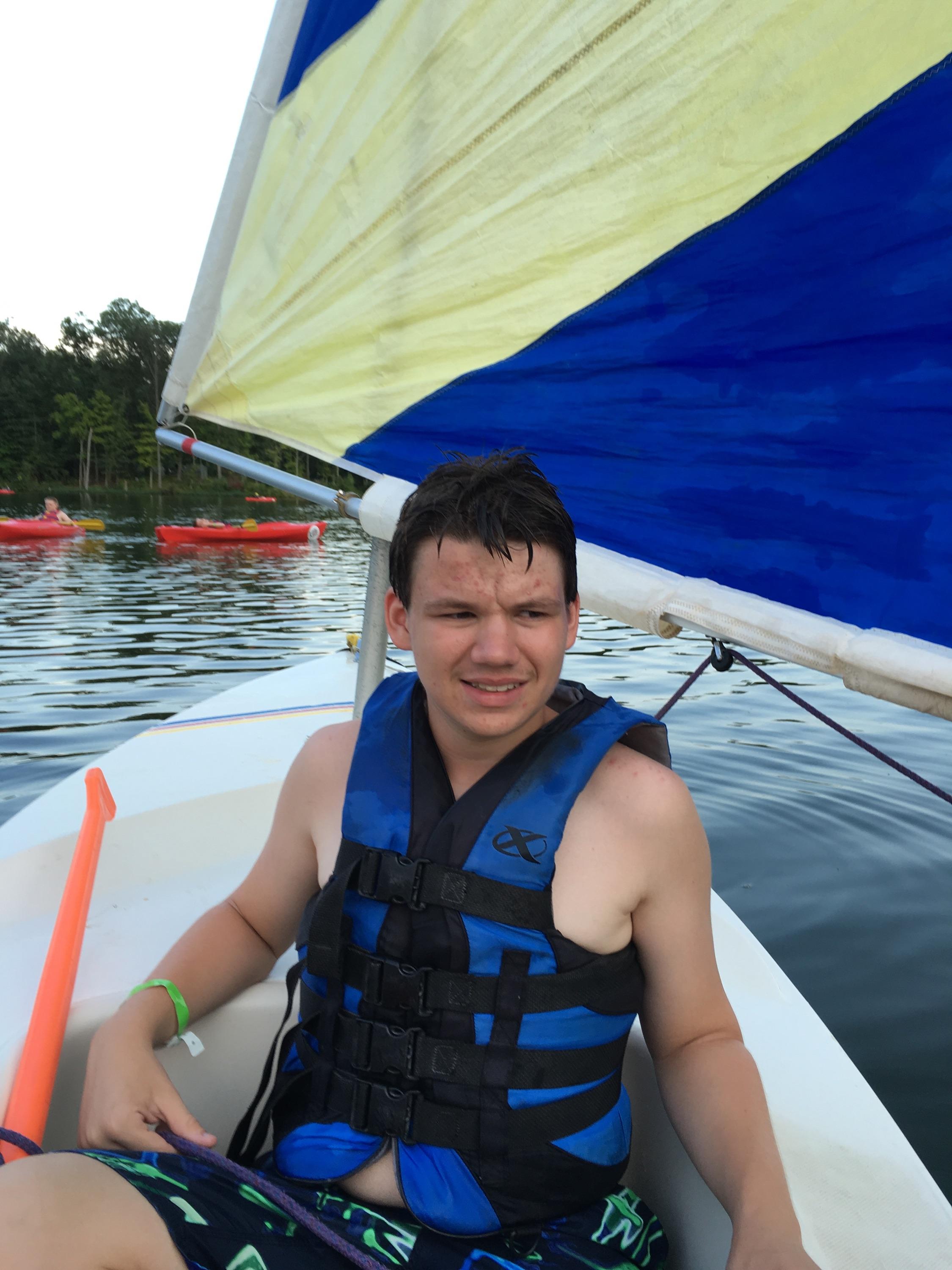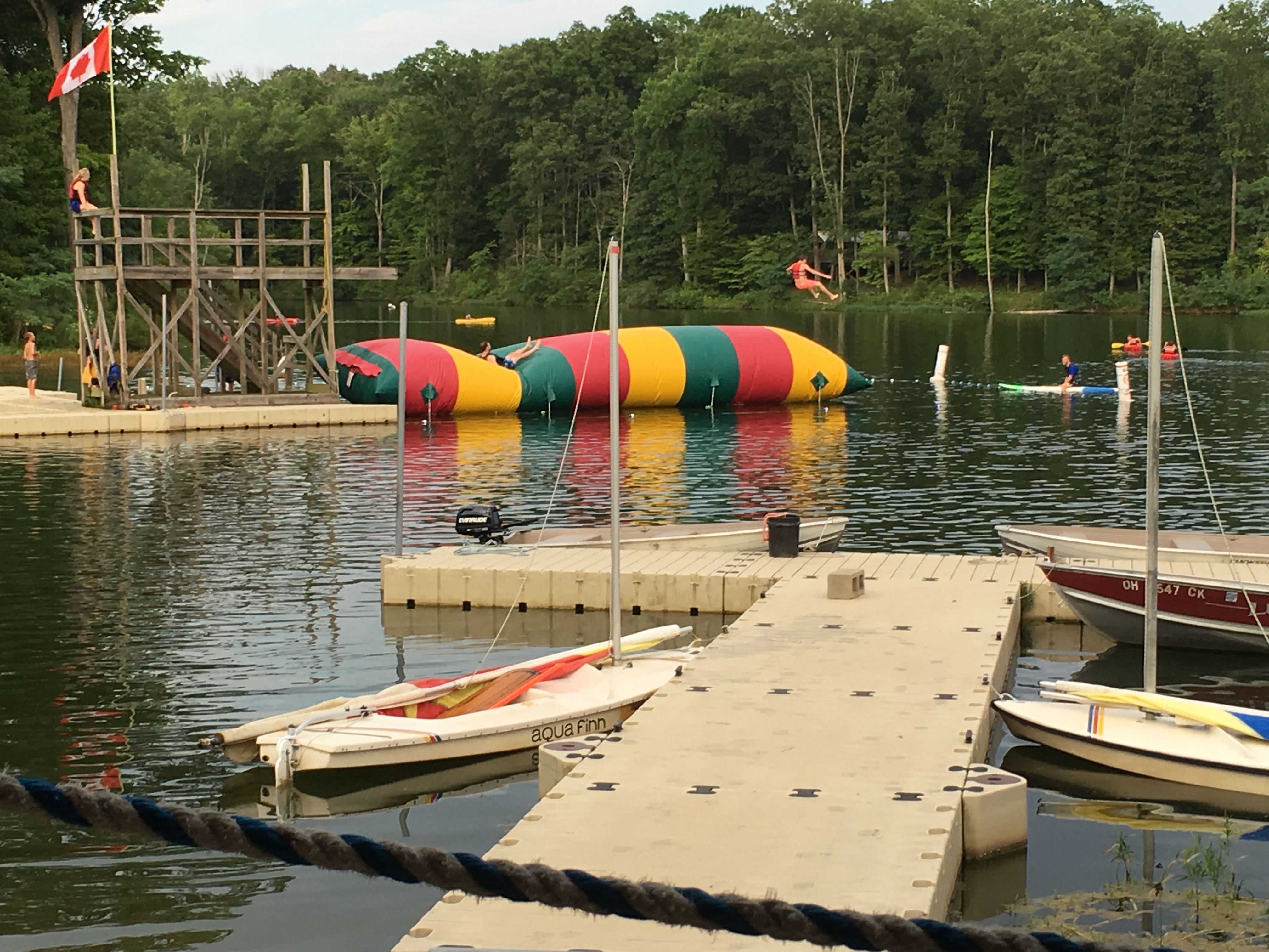 The Senior Patrol Leader (Benjamin Nagle) is trying to learn how to fly while playing at the “Blob” on the lake front. |