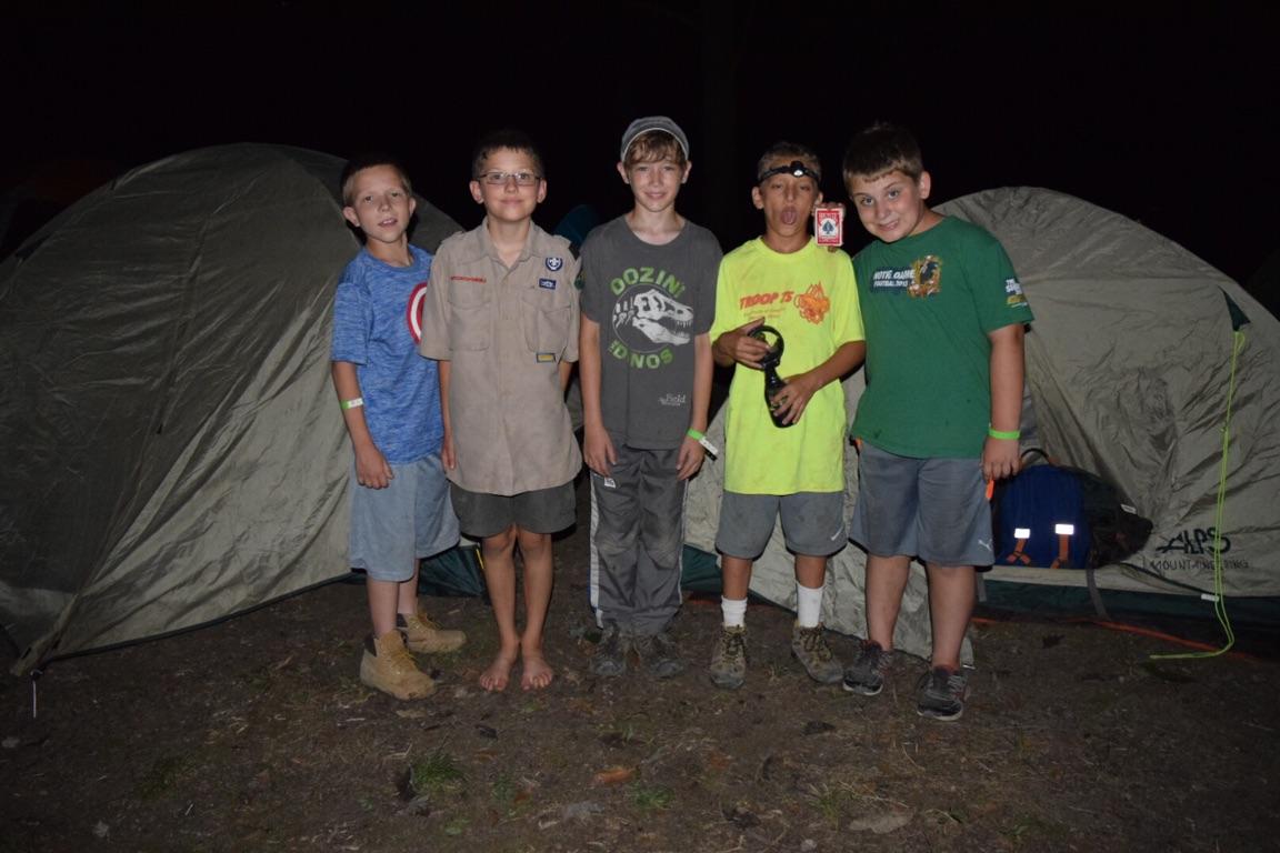 We arrived safely around mid afternoon. Then we checked in, setup camp, ate dinner and closed the night with a skit filled opening fire program put on by the staff. |