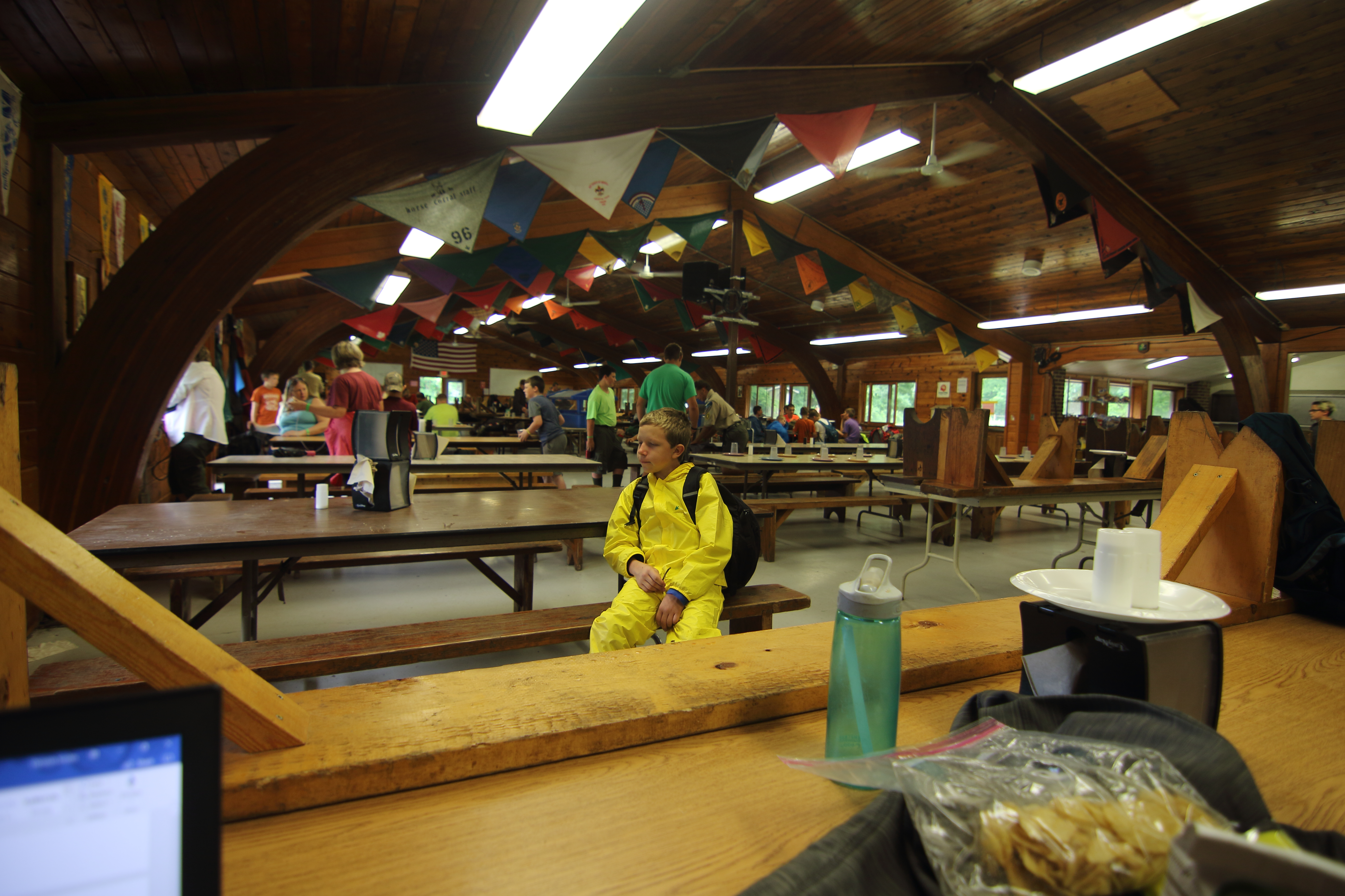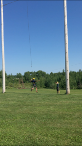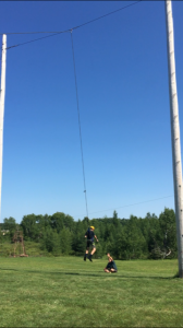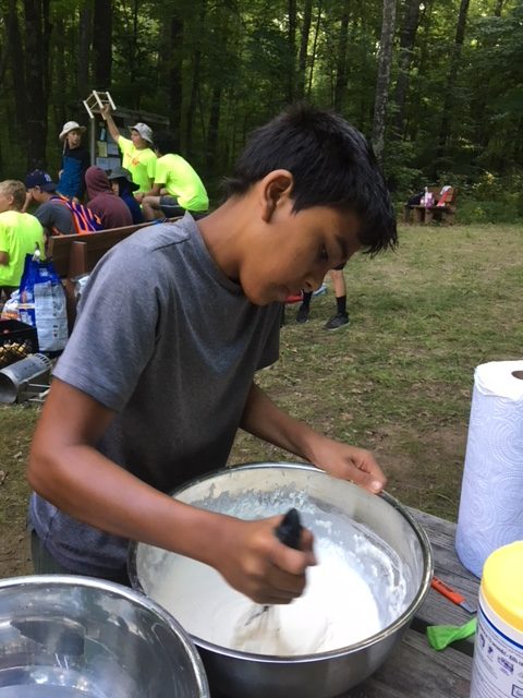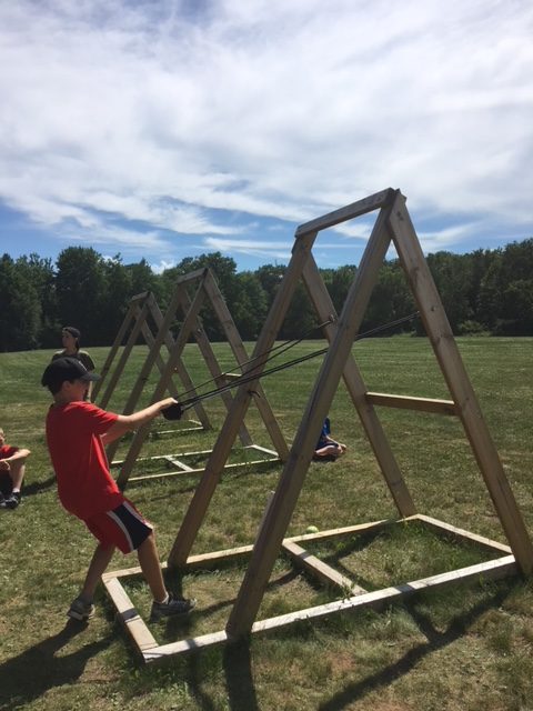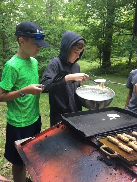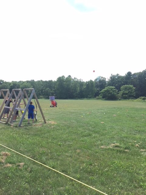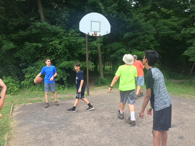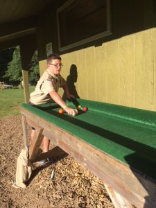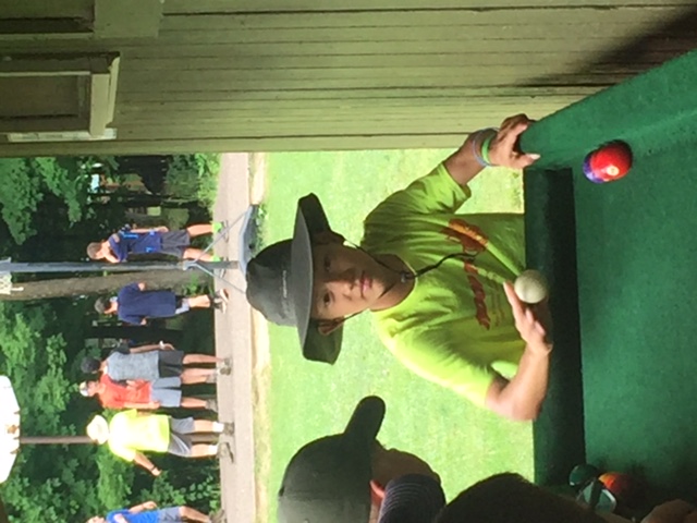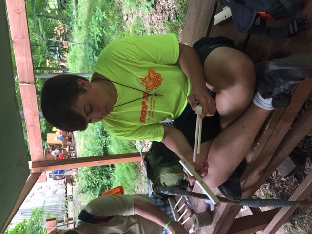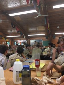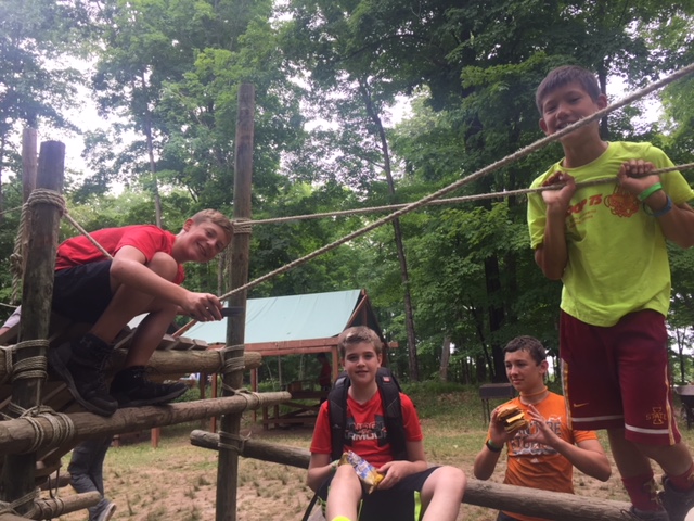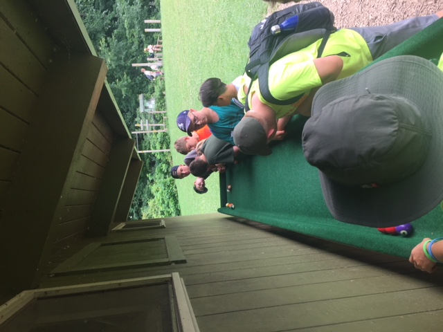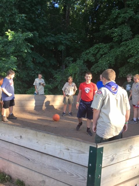 | Today at camp we had an exciting and efficient day (aside from the bear sightings an amazing day). After breakfast we broke up into our second set of merit badges. Before heading off to lunch, our troop played a few rounds of gaga-ball, which is essentially soccer but with your hands where if below your waist touches the ball, you are out. Following lunch, our troop split into two groups, one heading to high adventure and the other participating in camp activities. | ||