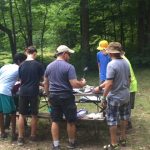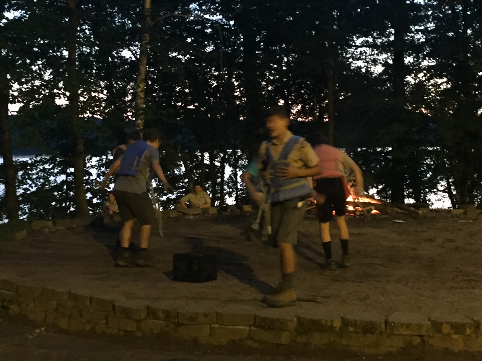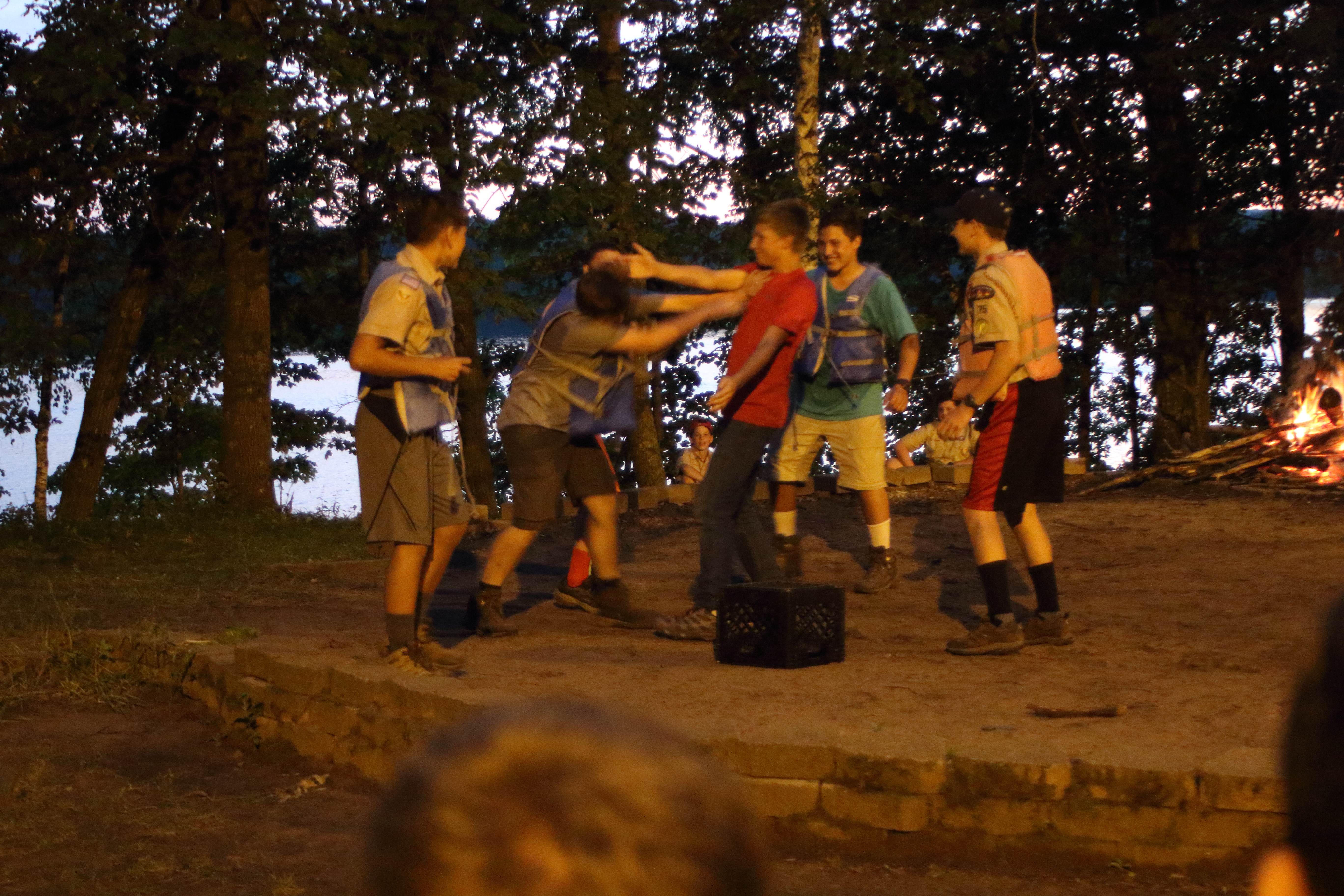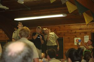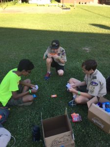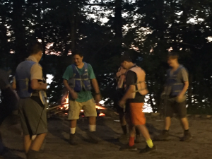 | One group at high adventure today went to the shooting range and did archery, angry birds but with a slingshot and milk crates, and knife throwing. Many activities arose once dinner had been completed tonight, from stargazing to board games to open high adventure programs. After this we had the bear approach our camp (see above) and now are going to bed. As a gentle reminder for concerned parents, all 37 scouts at camp are safe, and all scoutmasters, scouts, and camp staff are prepared to deal with bears in case we see them again. It is very uncommon for bears to attack humans, and from 1984 to current day, tomahawk scout camp has only had one incident where a bear has attacked a human. | ||