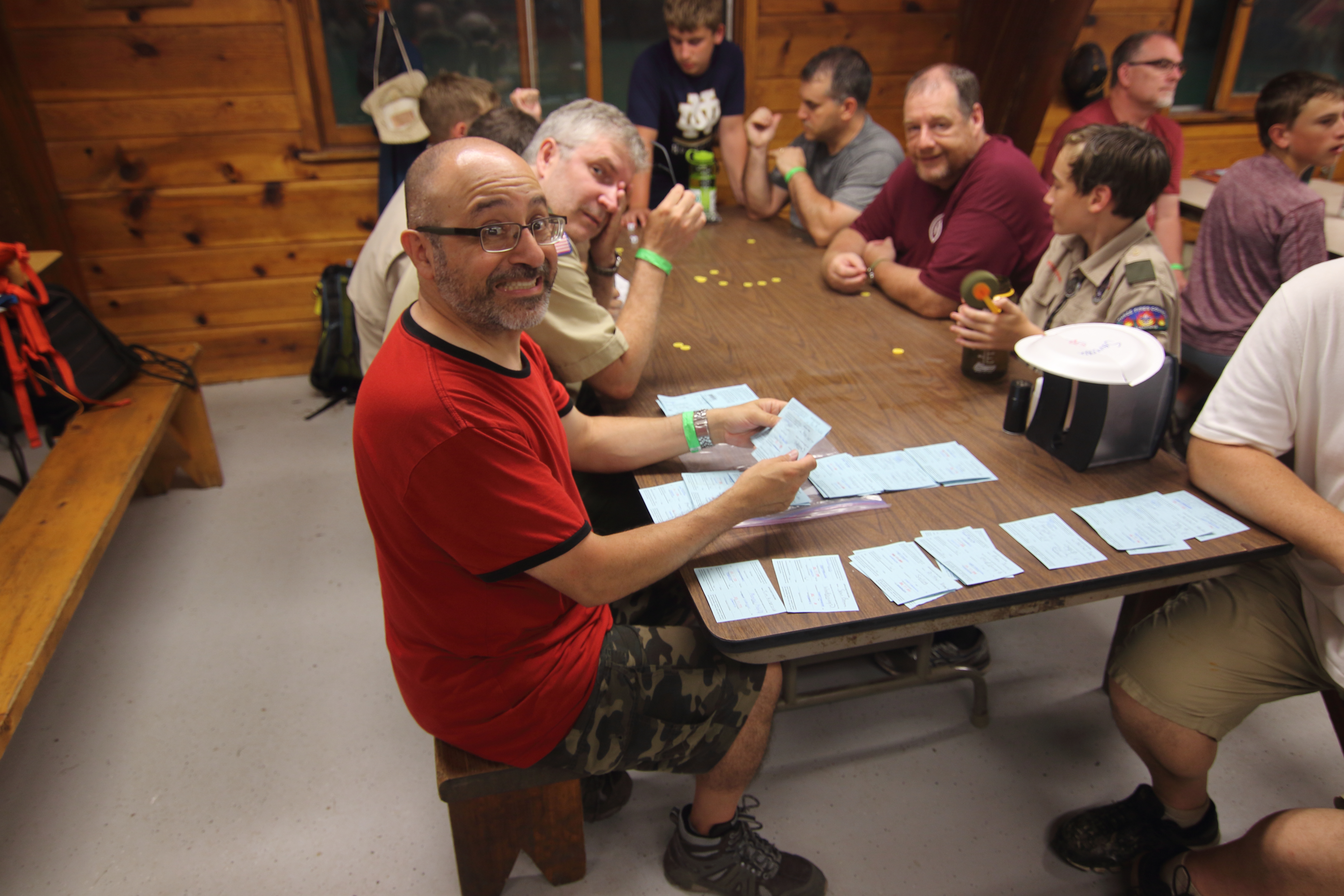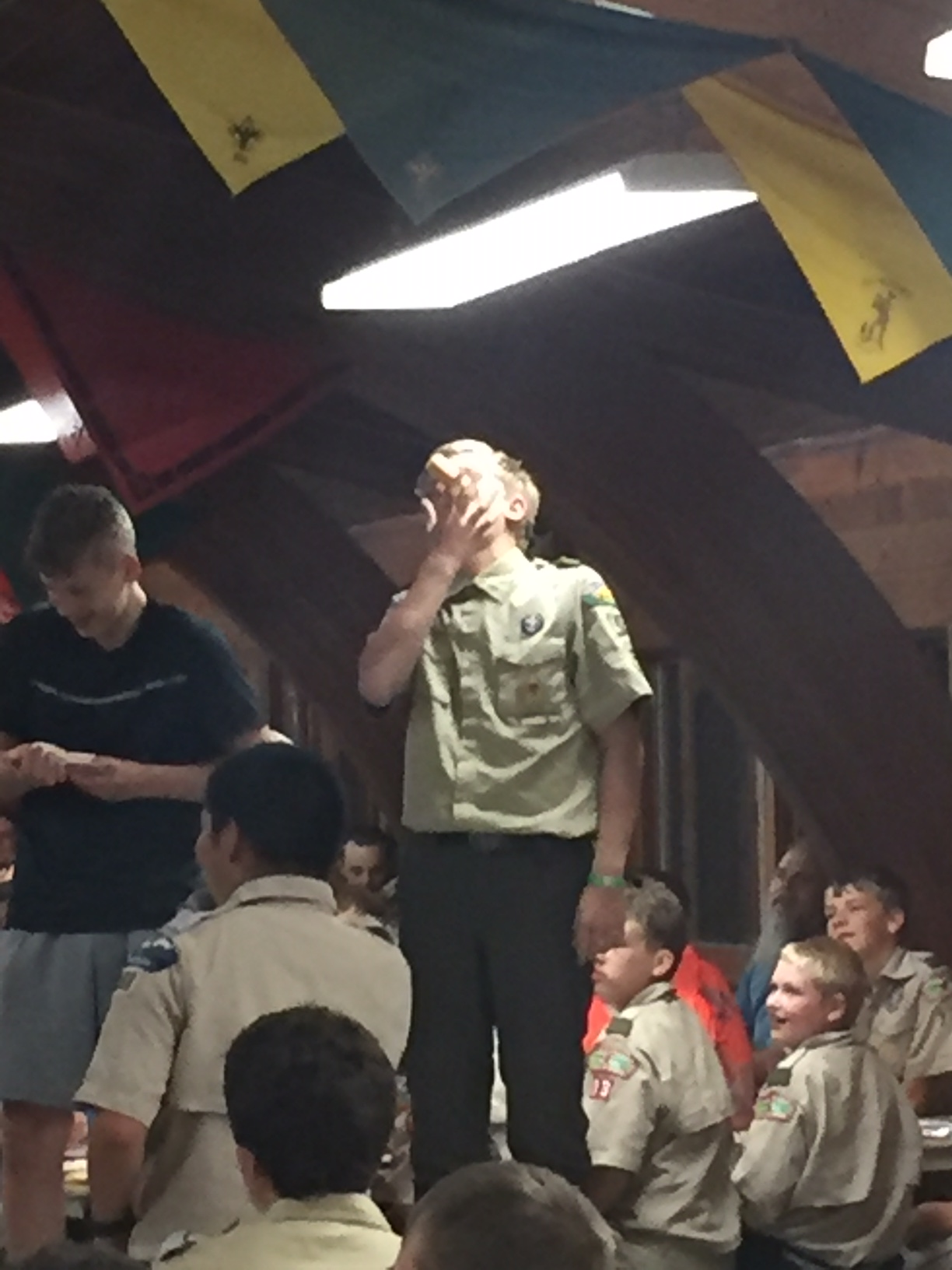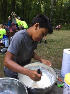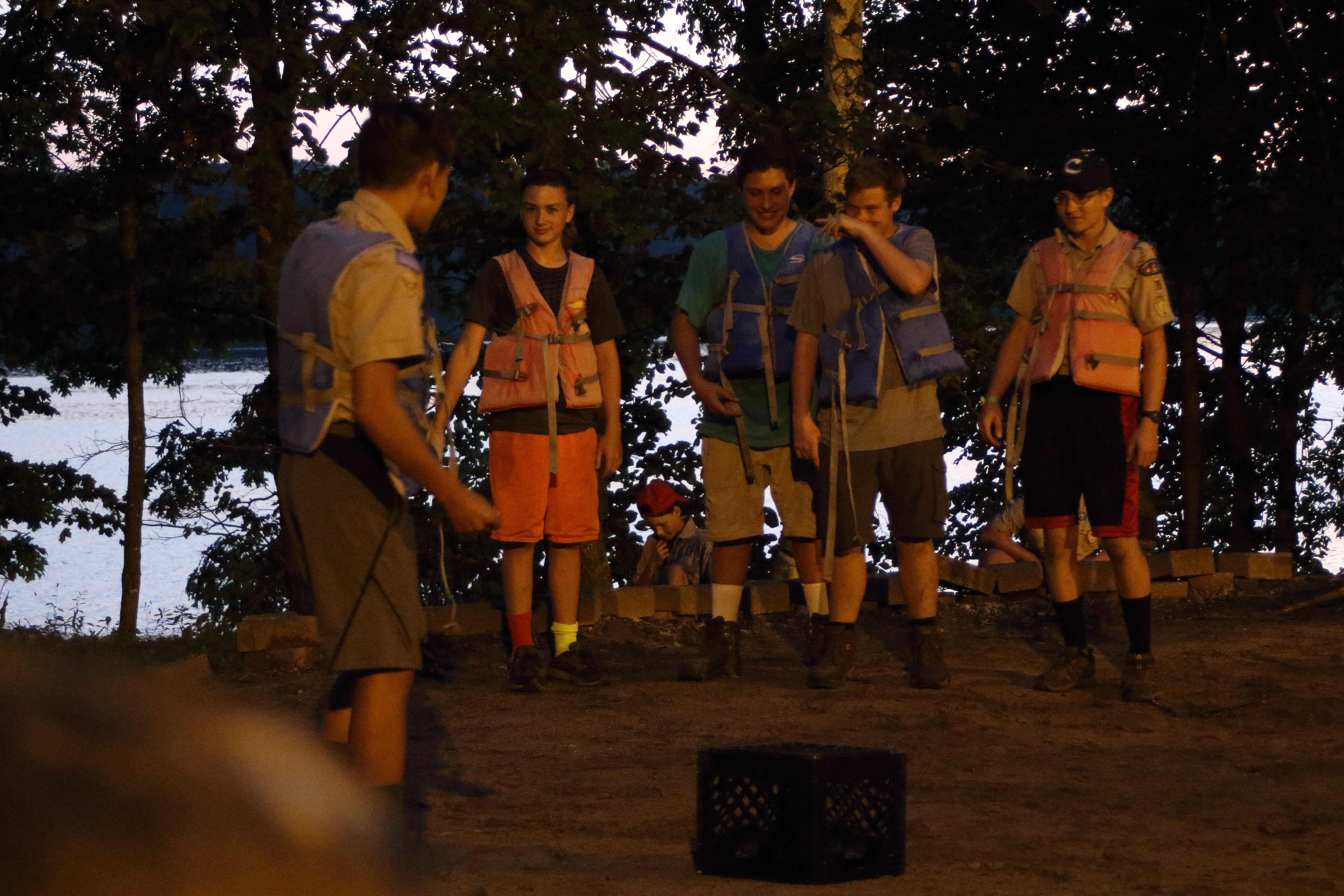 | One group at high adventure today went to the shooting range and did archery, angry birds but with a slingshot and milk crates, and knife throwing. Many activities arose once dinner had been completed tonight, from stargazing to board games to open high adventure programs. After this we had the bear approach our camp (see above) and now are going to bed. As a gentle reminder for concerned parents, all 37 scouts at camp are safe, and all scoutmasters, scouts, and camp staff are prepared to deal with bears in case we see them again. It is very uncommon for bears to attack humans, and from 1984 to current day, tomahawk scout camp has only had one incident where a bear has attacked a human. | ||