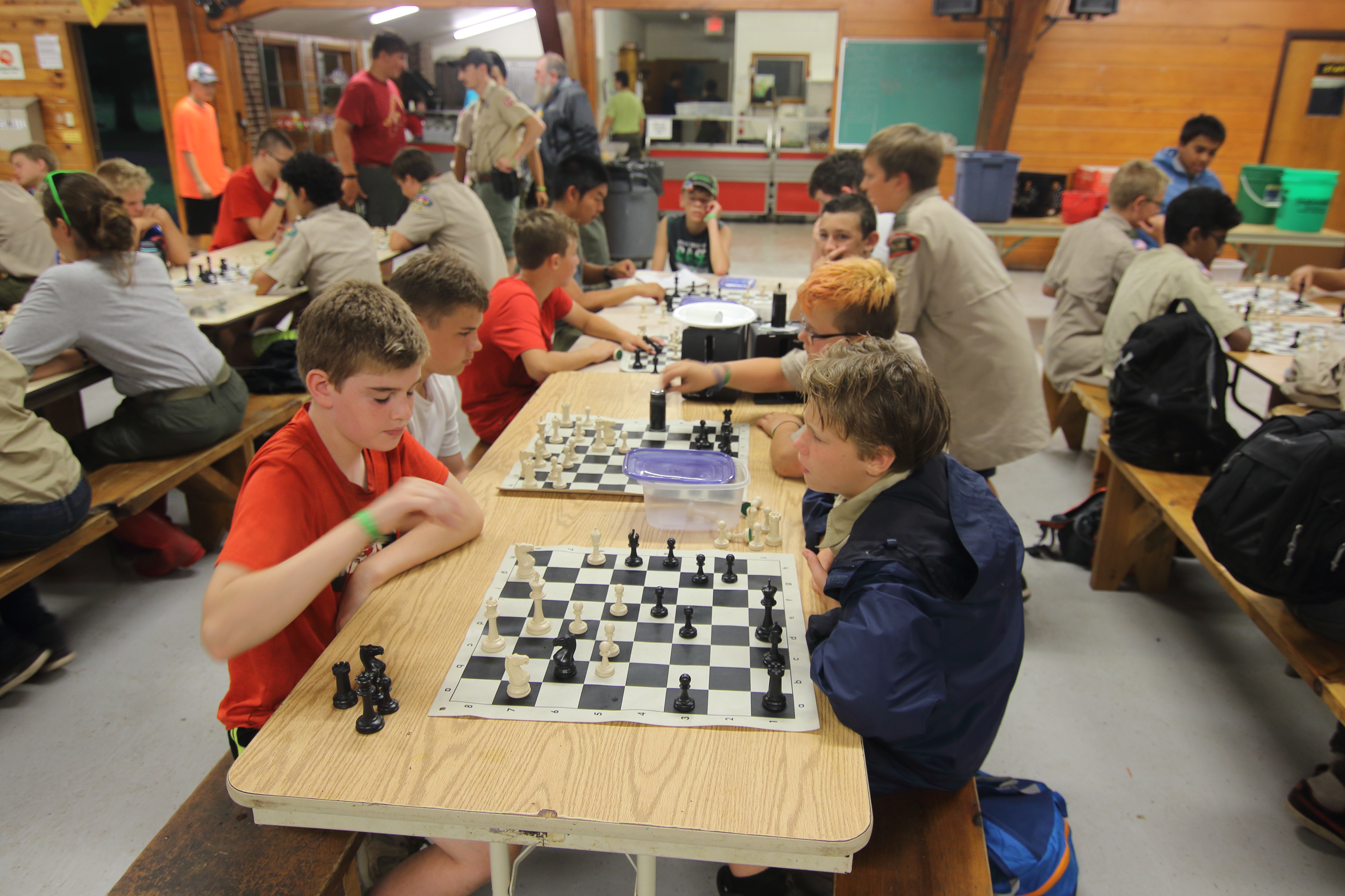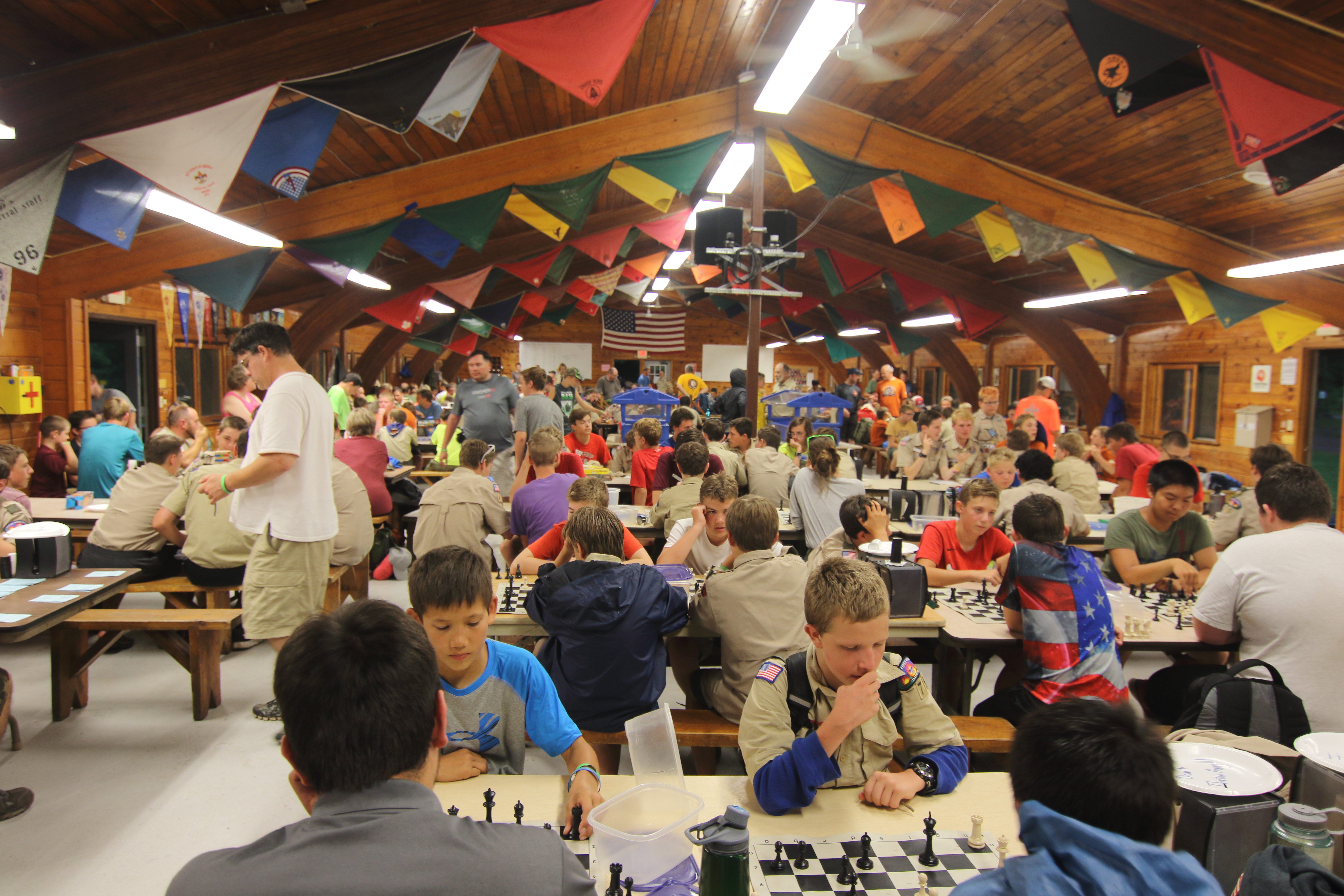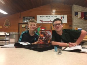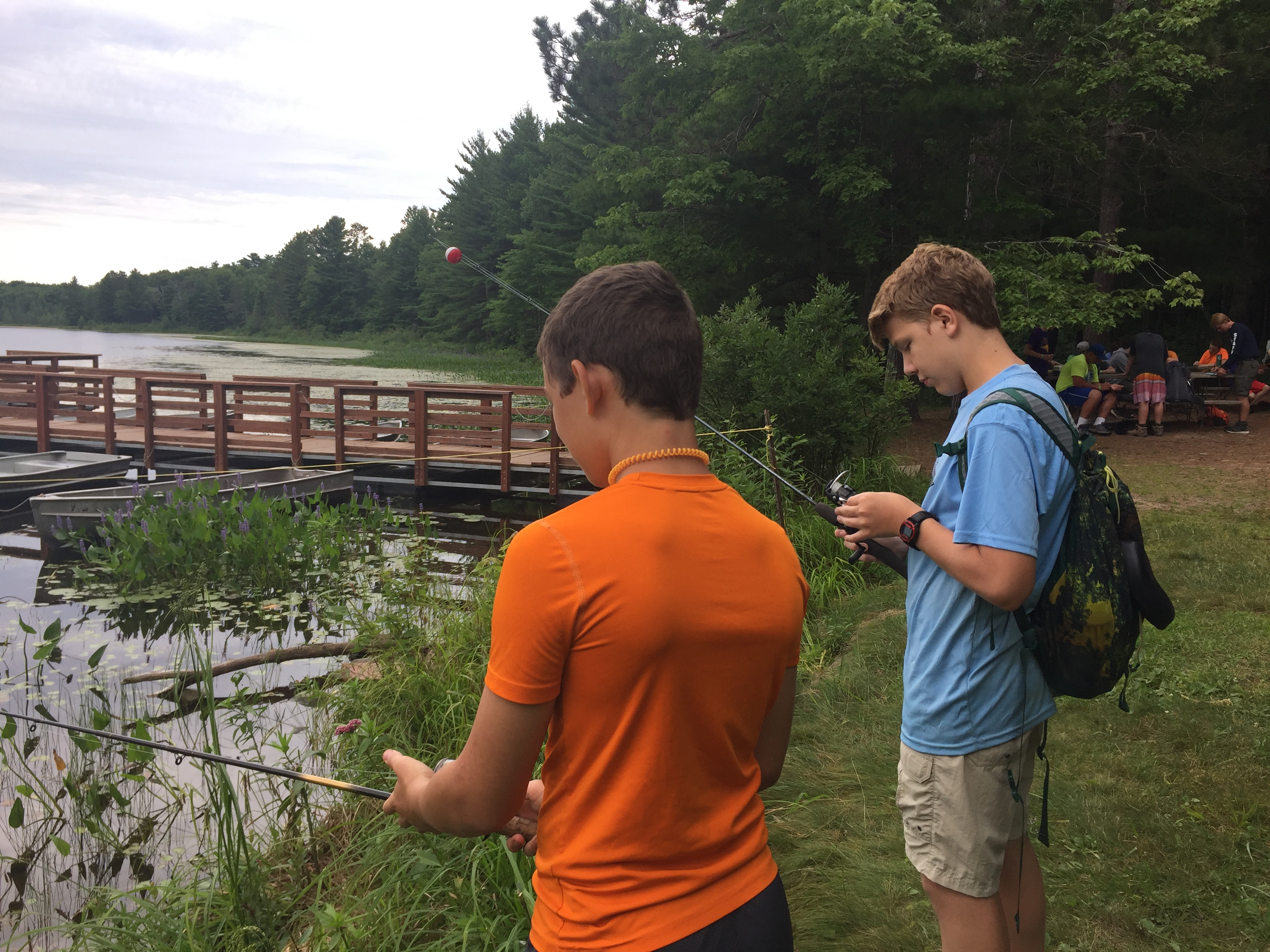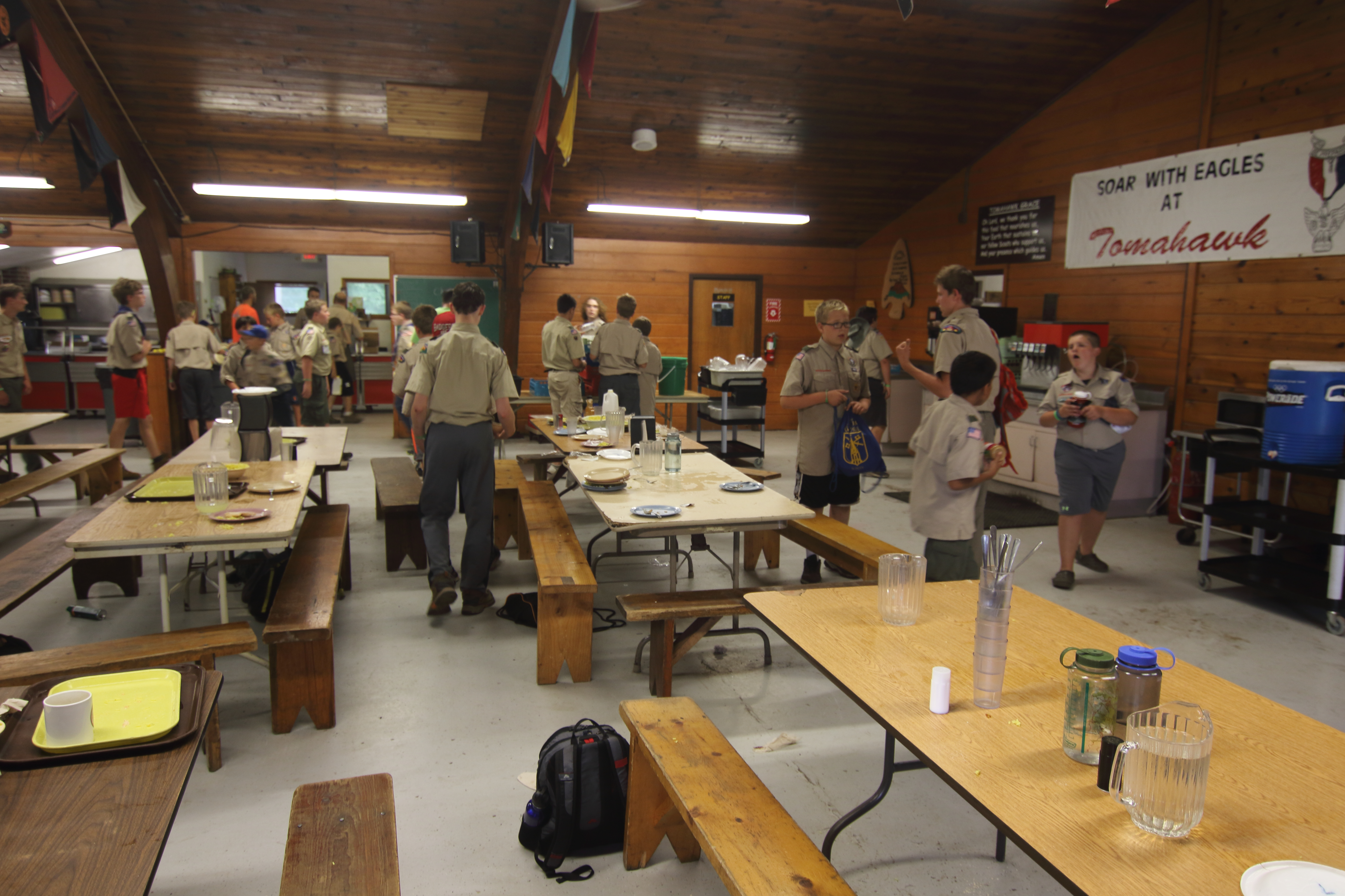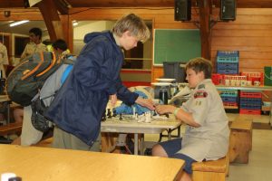 | As the week is wrapping up, we continued to have an amazing time here at Tomahawk. Today after breakfast, we headed out to our final merit badge sessions (Tomorrow will be free time). Then, we ate chicken and tater-tots for our lunch. Following that we split into our two groups; high adventure and the troop activity. At high adventure we went to the aqua rig, which had a “blob” and a swing that launched you into the water. The rest of the troop went to a conservation project to spread mulch at the climbing tower. Once the project was done, they headed down to the rifle range to participate in open shoot. For dinner, we had meatloaf, mashed potatoes, and broccoli. After dinner, we were about to head off to our evening activities, but we were still stopped by the staff because of a storm warning. Since everyone was already in the dining hall, we were safe from the storm. The games were brought out to wait out the storm overhead. A hour or two later, we were given the all clear to leave the hall. | ||
