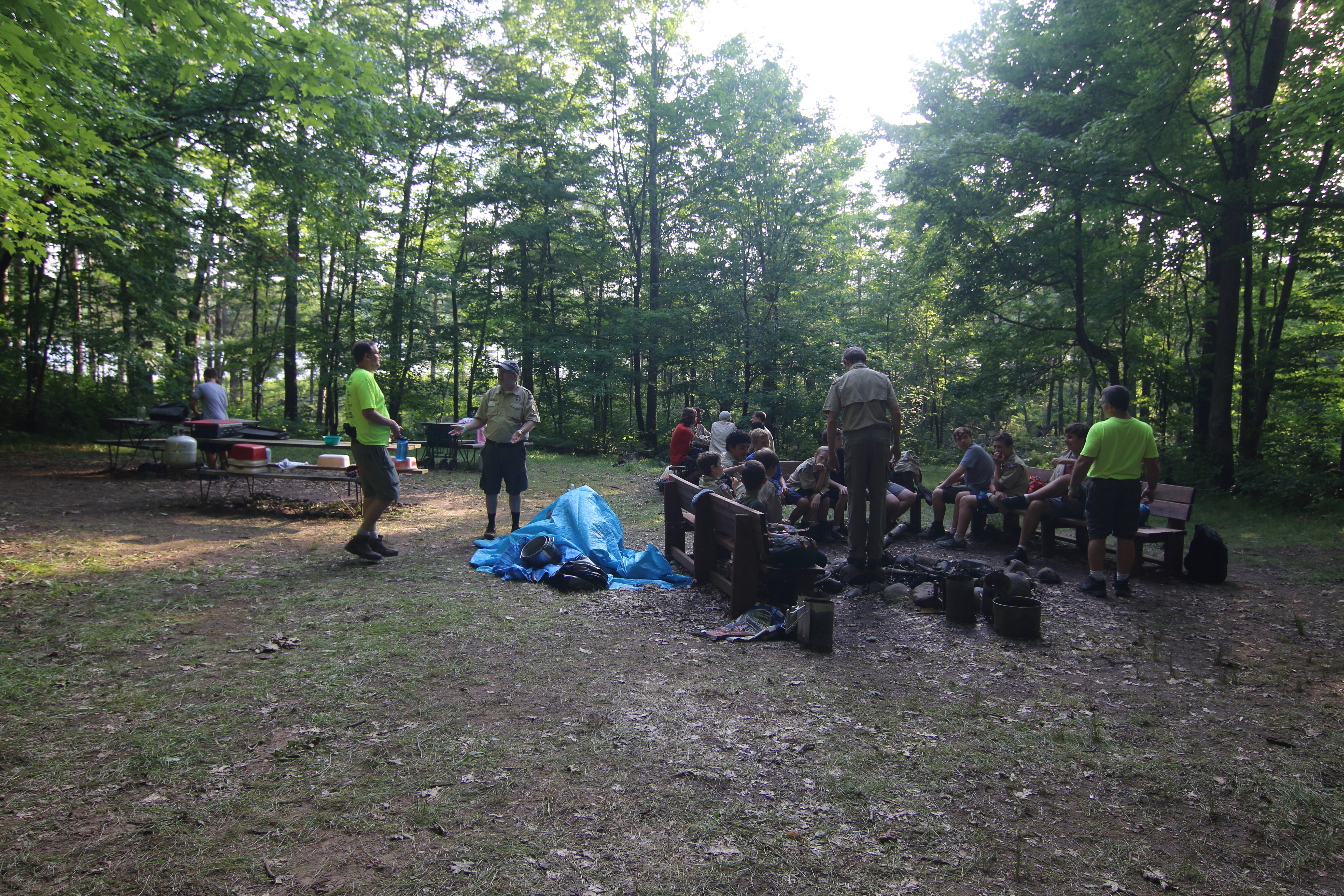 Out First Day at Camp Today was our first day of camp. Arriving roughly about 2 PM, we quickly set up our tents and prepared for dinner. As the activities are far from our site, each day we want scouts to bring a bag down to this area, and carry everything they will need with them. After dinner today the troop went on an orientation of the camp while I and a few adult leaders were in a meeting for troop expectations and camp protocol. |