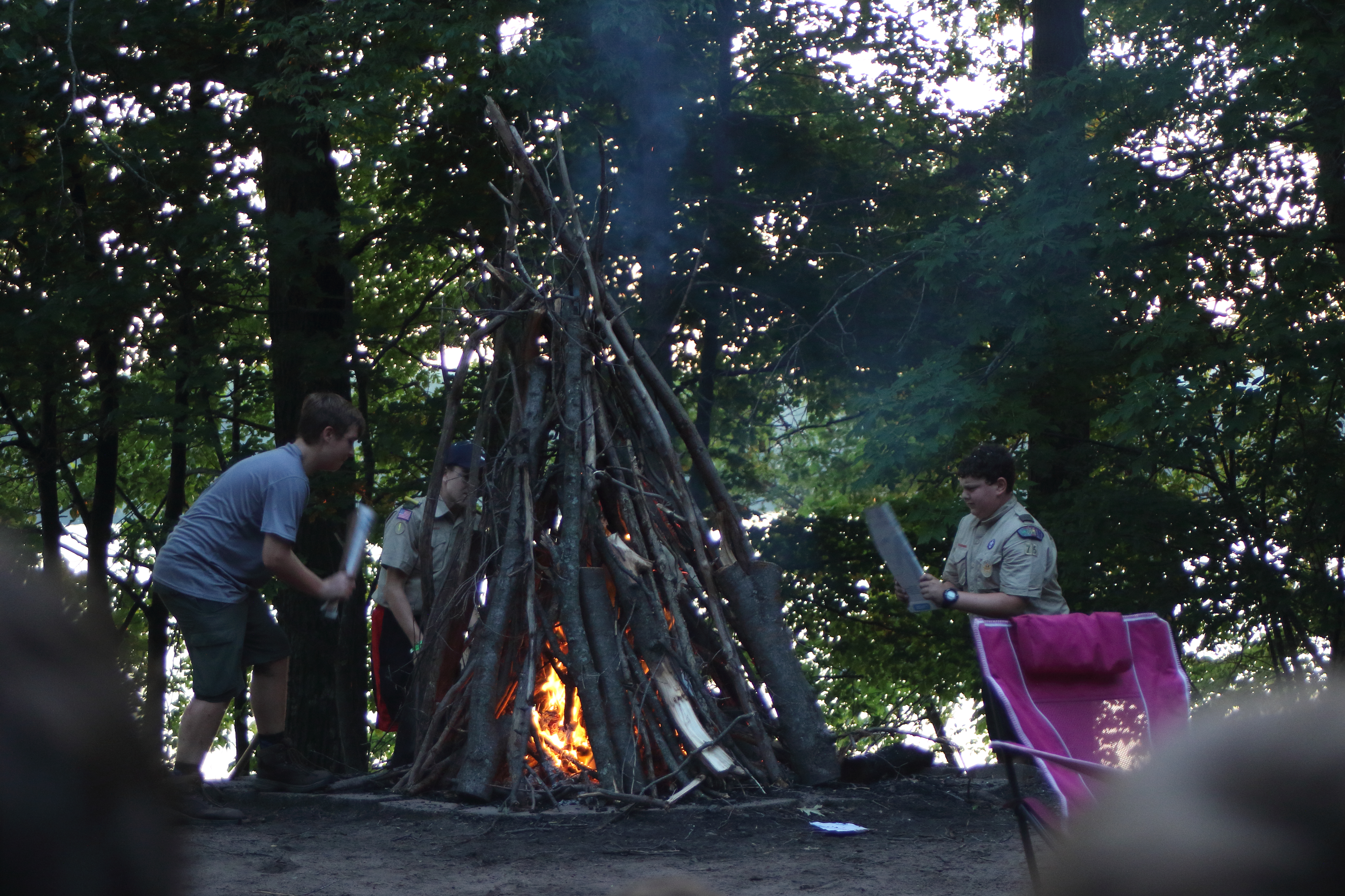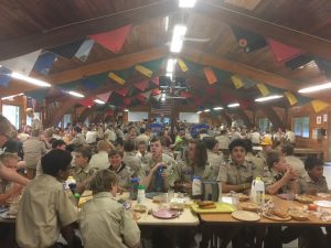 | Today was not a very eventful day. As we had wrapped up merit badges, the scouts didn’t have much to do. Our troop activities were after breakfast, and consisted of horseback riding, archery, and tomahawk throwing. After lunch our troop took place in some fun and games in the parade field, and then we went to the beach bash. This was sadly cut short due to a miscommunication, and our troop had to go back to our campsite. Another miscommunication arose when our troop had to build the closing campfire in under 30 minutes (it looked beautiful by the way) but then after dinner our closing campfire was a success. We will leave camp tomorrow morning around 8:00, and I will send our final daily update when we get home. | ||