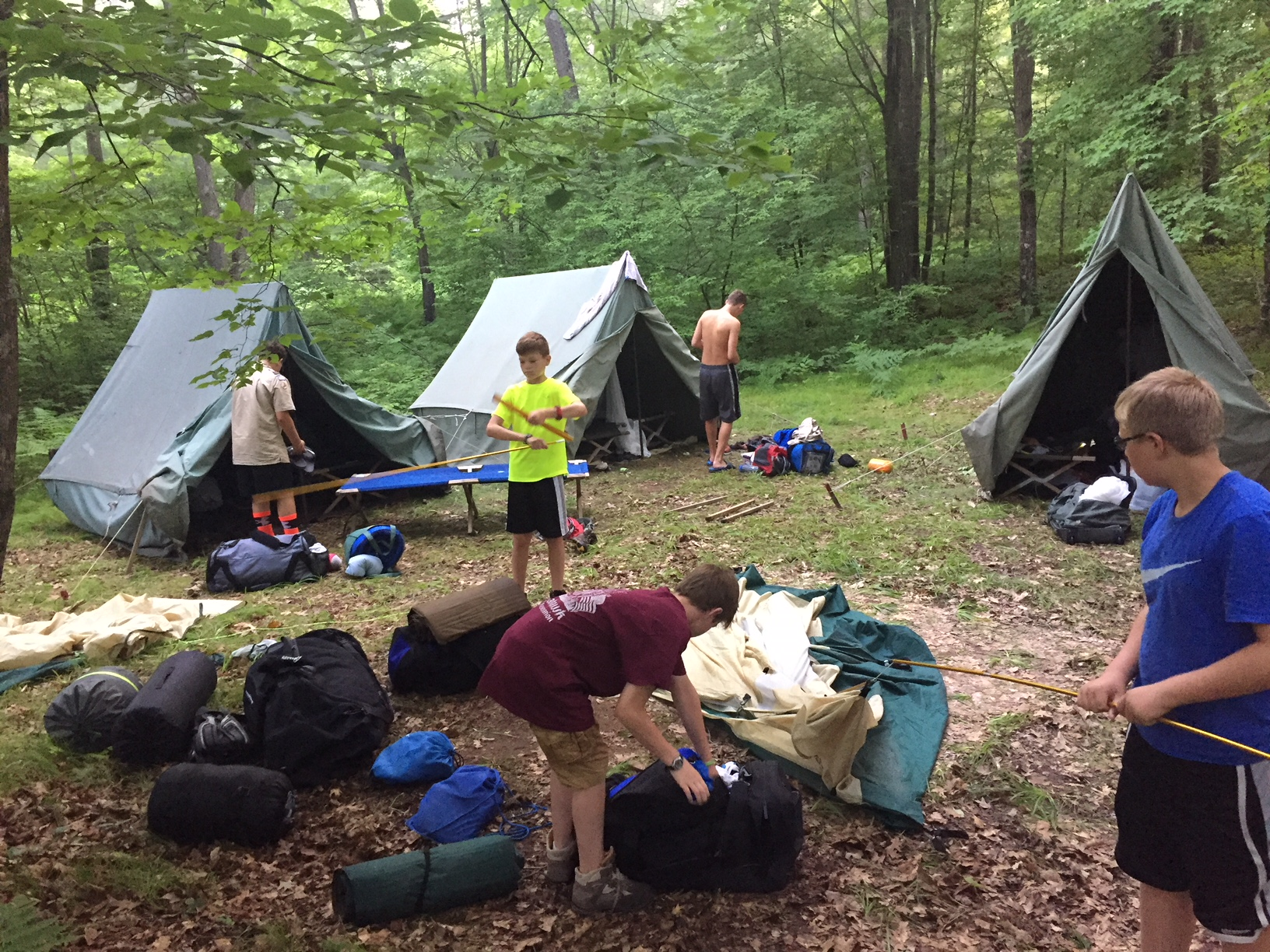 | We have had three bear sightings over the course of the past two days, and are actively practicing bear safety procedures explained to us by Mr. Brown. We require scouts to be sure they have no food in their tents and that all food is stored in bear boxes. All scouts are currently safe and parents have no need to worry as the scoutmasters are working very hard to keep our troop safe. | ||